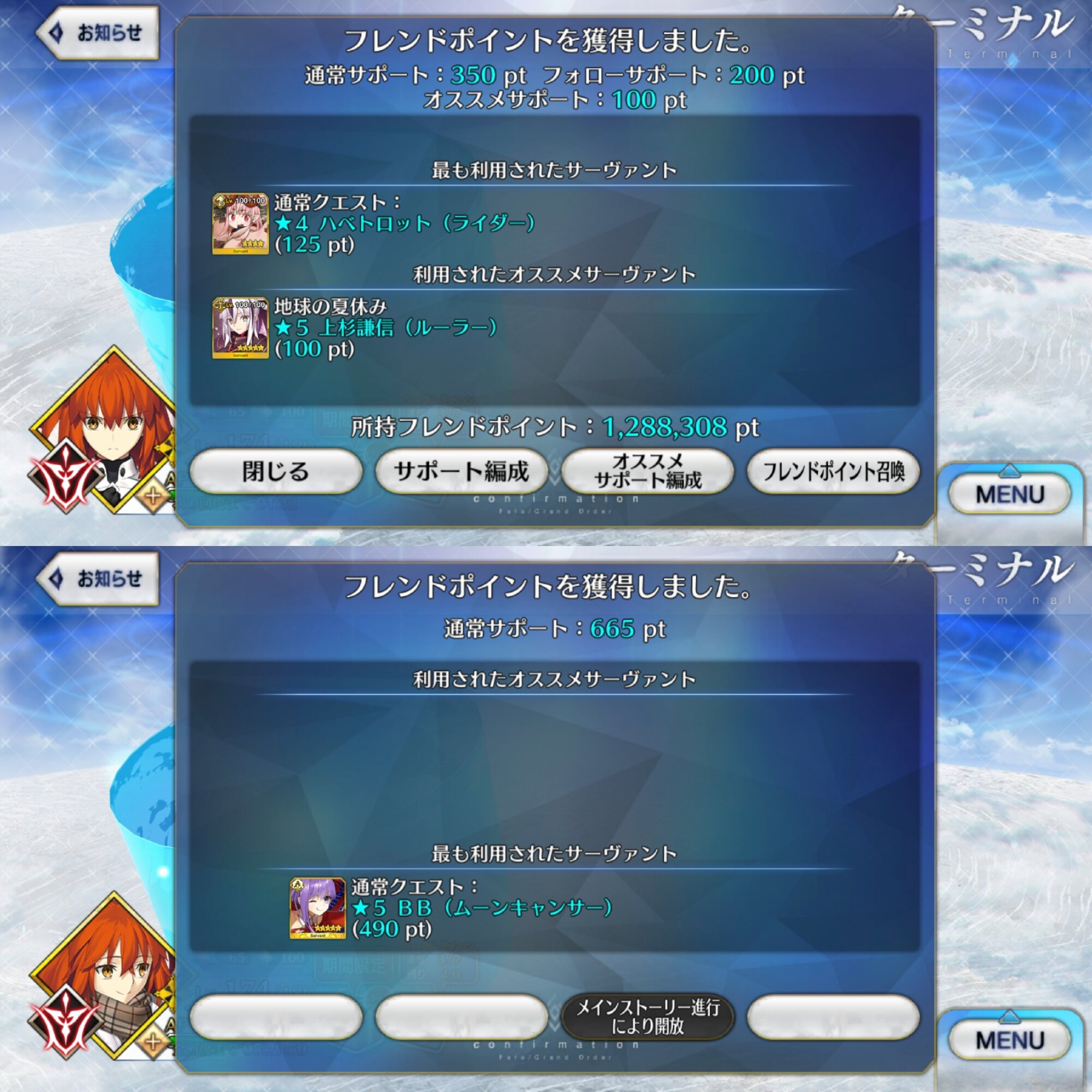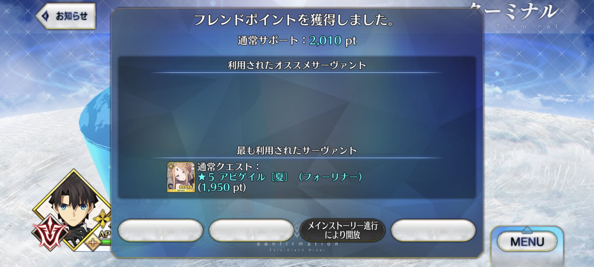 右下、早すぎるよ。フレサポセイバーが続々と冠位になって行く
