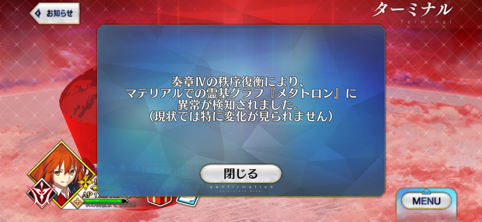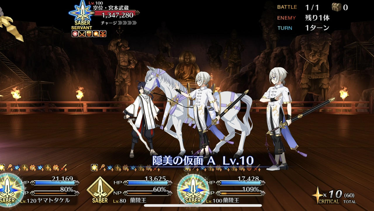 冠位礼装は標準で100レベになってて使い勝手いいし、終章の前には報酬礼装枠にセットしておこうと思う
