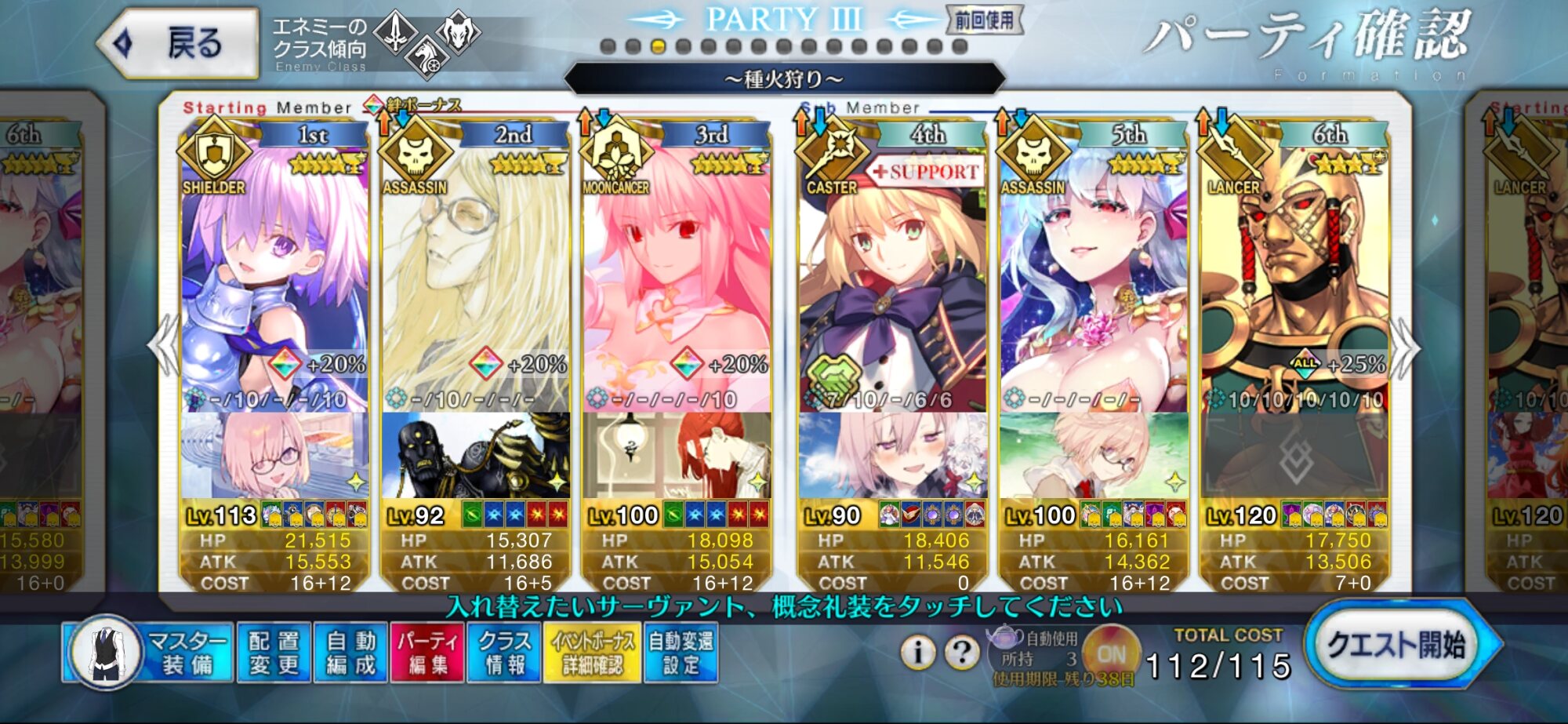 クラススコアはモニュメントの要求値エグいんですよ認定戦の礼装、マスターEXP20%アップだから、それぞれのクラスのやつも来たら理論的には120%アップにできるのか