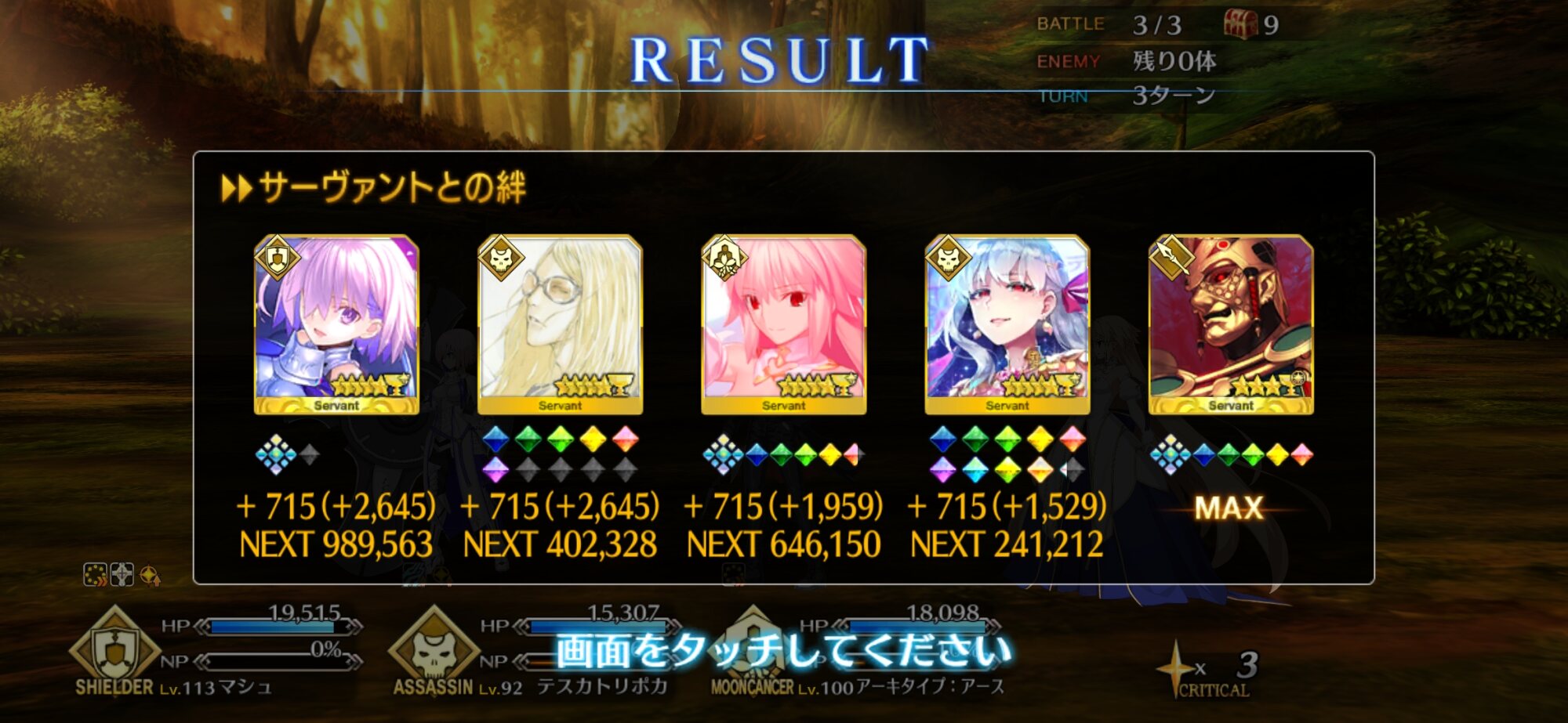 なんか狂のもだけやたら少ないのそのせいか(狂とEX1・2全解放)で、あの…殺修練場極級一回で収穫できるモニュメントの数は…?