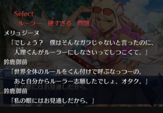 色々アレも外部で騒動があり申した。当時はシステムに今のように鯖選出機能が無く、コードを入力してゲットする方法だったのだ。ところがネット界隈で人気だったヘラクレスさんコードが当時不人気だったすまないさんコードに書き換えられヘラクレスをゲットしたと思ったらすまないさんだったみたいな悪意ある情報もあったのだな。そんなすまないさんも今や竜属性相手なら弓以外全クラスで出撃できるほどの強化をうけたのは周知の事実である>>947