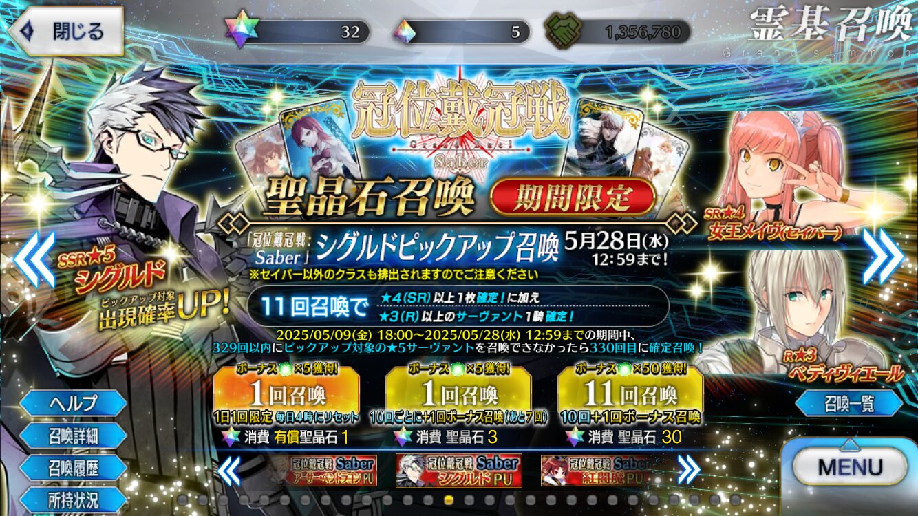 贅沢すぎる……ワイは無記名100個とかでええわ10周年強化イベントの最後の枠に星5セイバー居そう