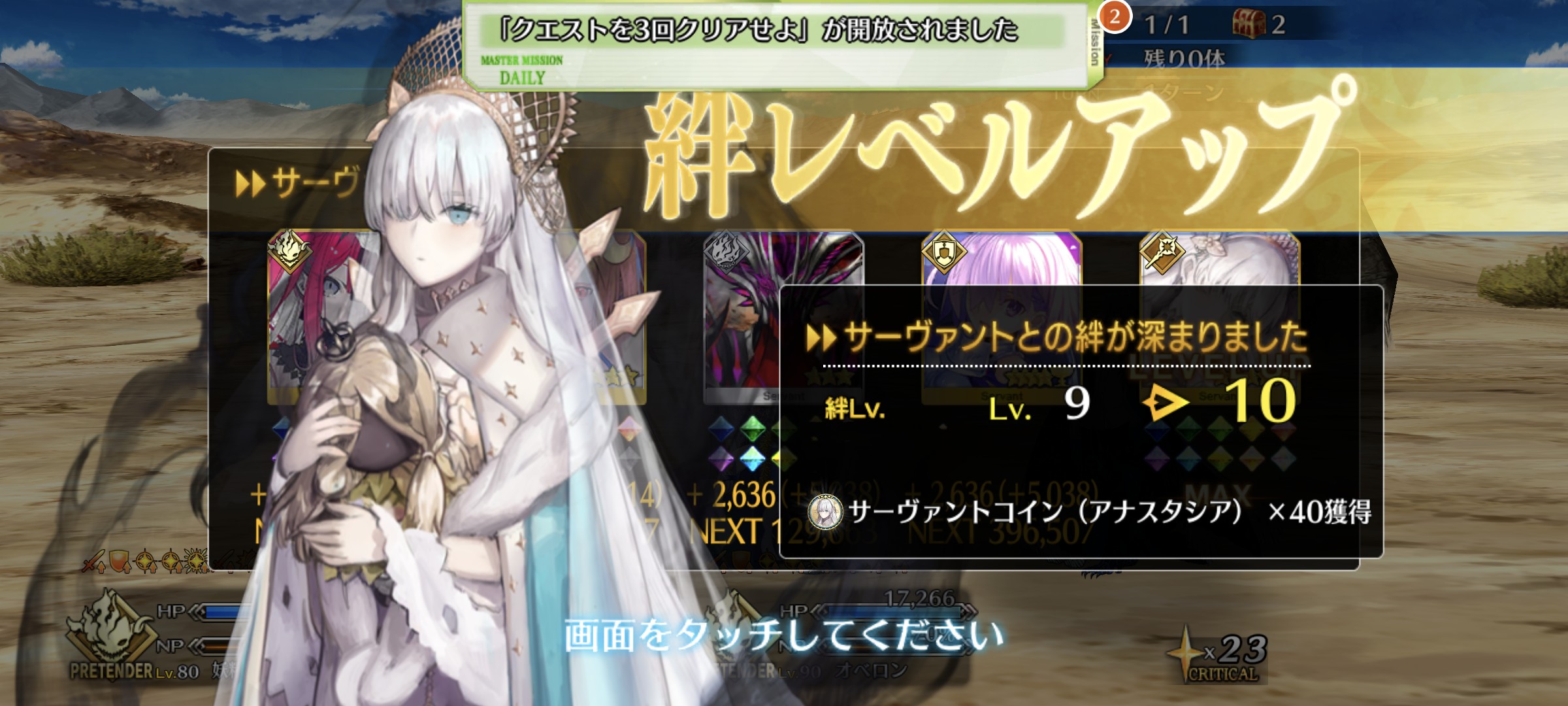 おめっと~昔と違って絆値も段違いに効率よくなったので剣クラスじゃなくてもオデコ使ってれば数か月あれば自然回復だけでも絆10にいけるんやなって>>57