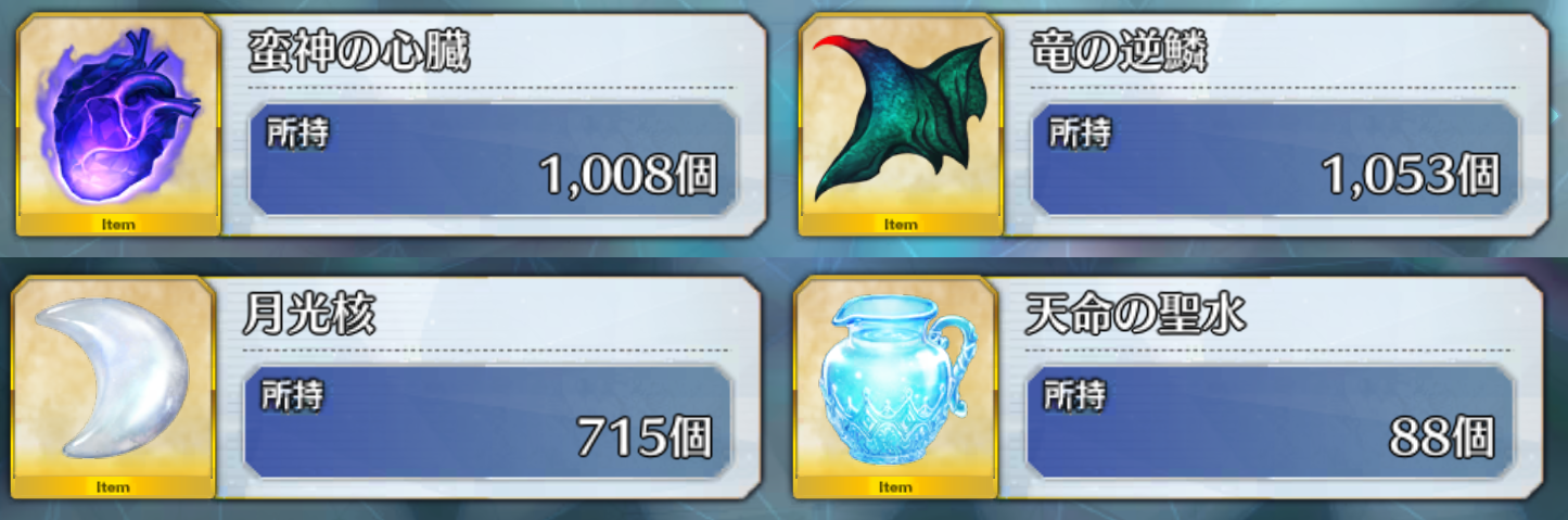 1日に3〜4個落ちればイベ開始までに達成できるしヨユーヨユー(バーサーカーとキャスターの別霊基持ちの妻はこの場合どちらの最推し枠にも入れるのだろうか?そもそも自分が濃くないという問題は置いておいて)