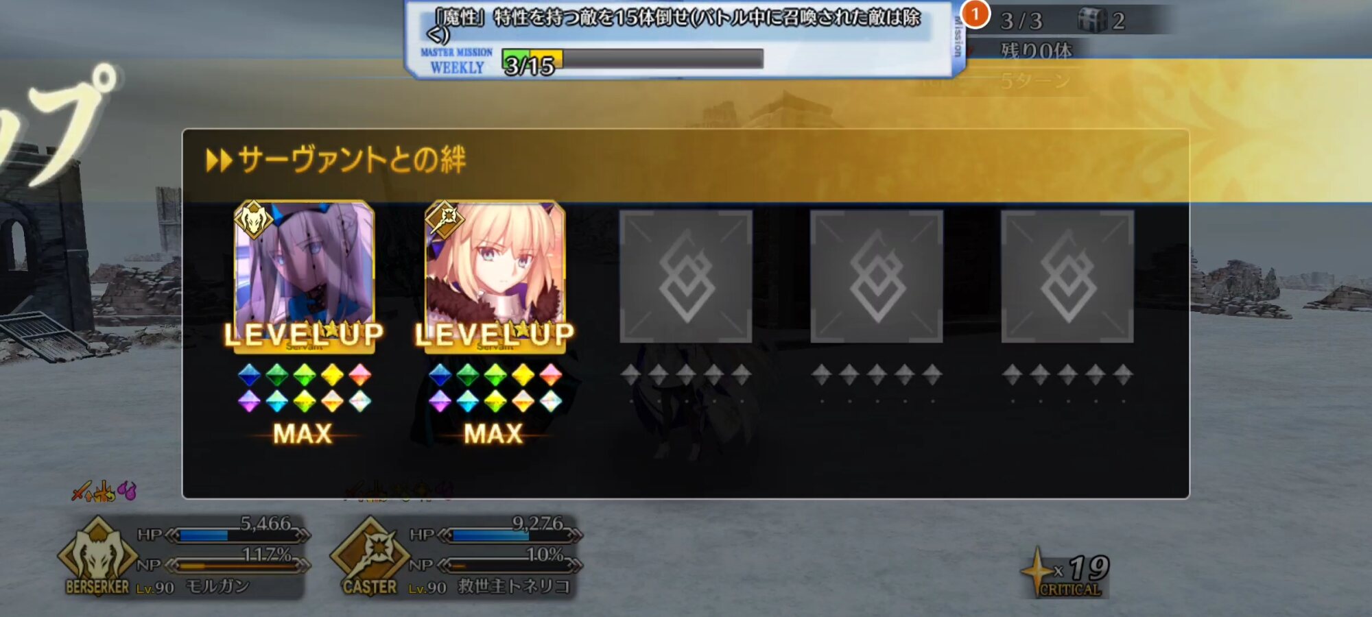15でも意味があるのよいよねまあどれだけ交換礼装に絆効果詰まれても交換するマナプリないから関係ないんですけどね!!