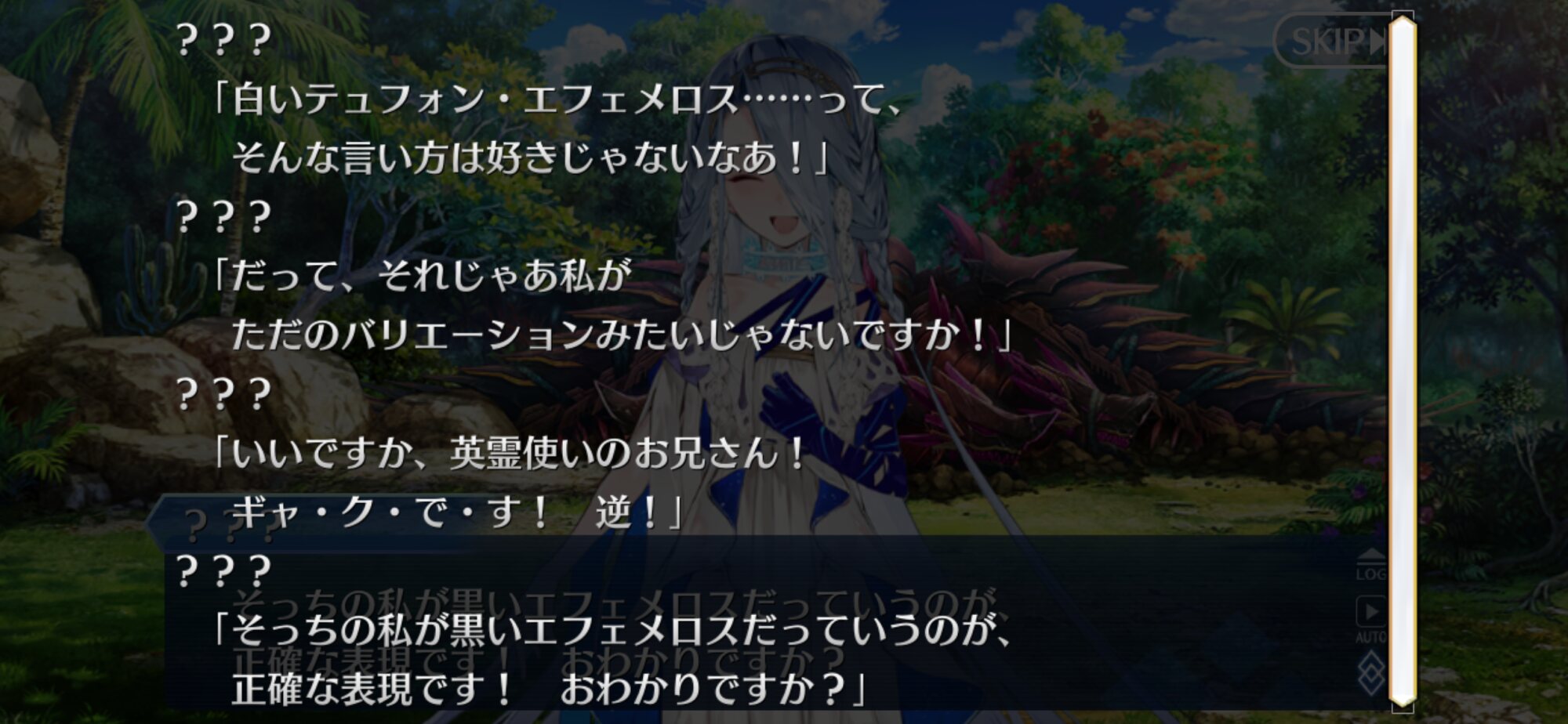 ブーメランパンツ白髪色黒ドンファン「未通なのは君自身だろう!」テュフォンちゃんの三臨姿って今日のシナリオに出て来たあの格好だよね