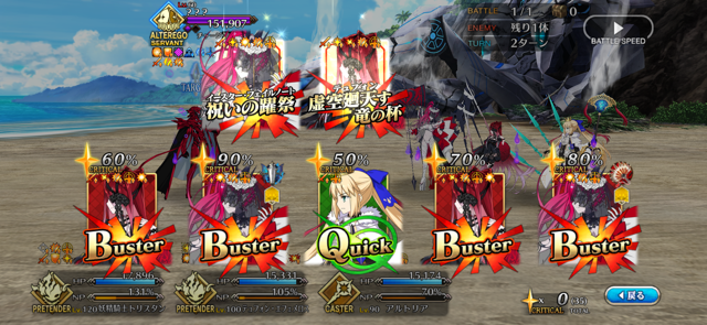 固定の子除いて趣味編成(借りてくるのも式さんなので趣味枠)にしたら2ターンで終わったから参考にしますわ!!!やっぱり無法過ぎるな”直死の魔眼”