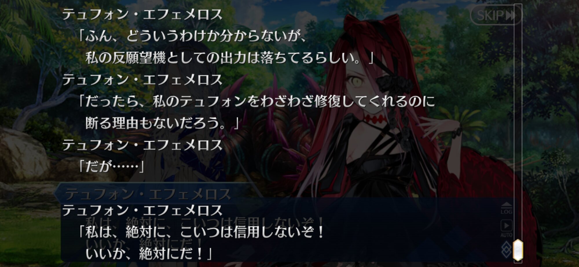イベント内では修理だ改修だなんだと言っているけど、もっと単純にテュフォンがエフェメロスをペッってすれば一瞬で全ての機能が十全に復活するんじゃなかろうか…という考えが拭えない