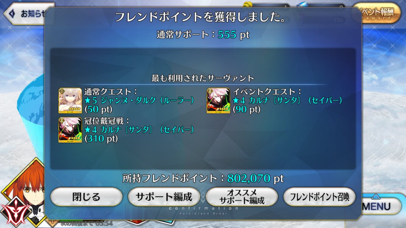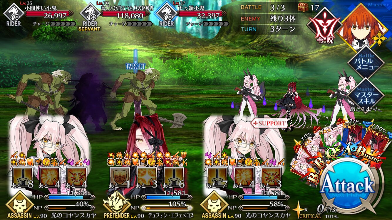 ストーリー戦やった感じ冬木条件としては大分強いんじゃないかと思ったけど固定サポだけで初心者さんでもいけるんだろうか
