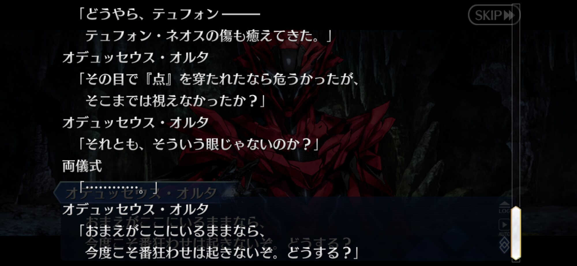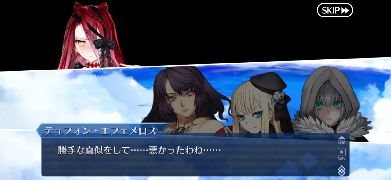 好意的に解釈すると表情交えた会話する為にずっとテュフォンが空気読んでデッカイ立体映像エフェメロスを出し続けてたんだろうなぁって思ってる