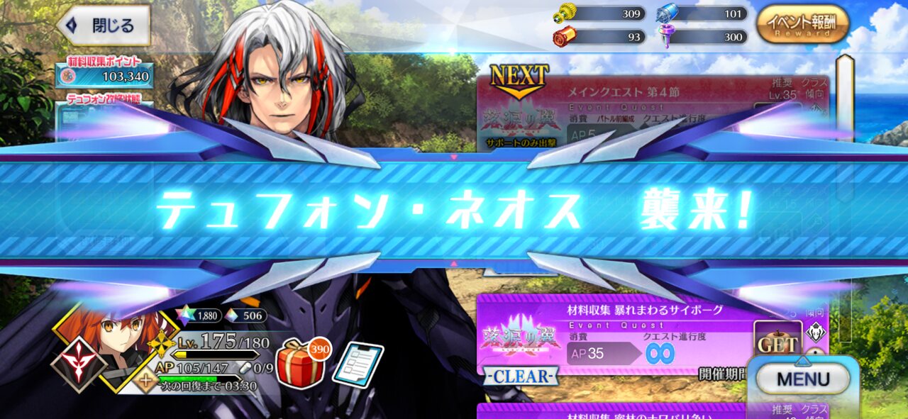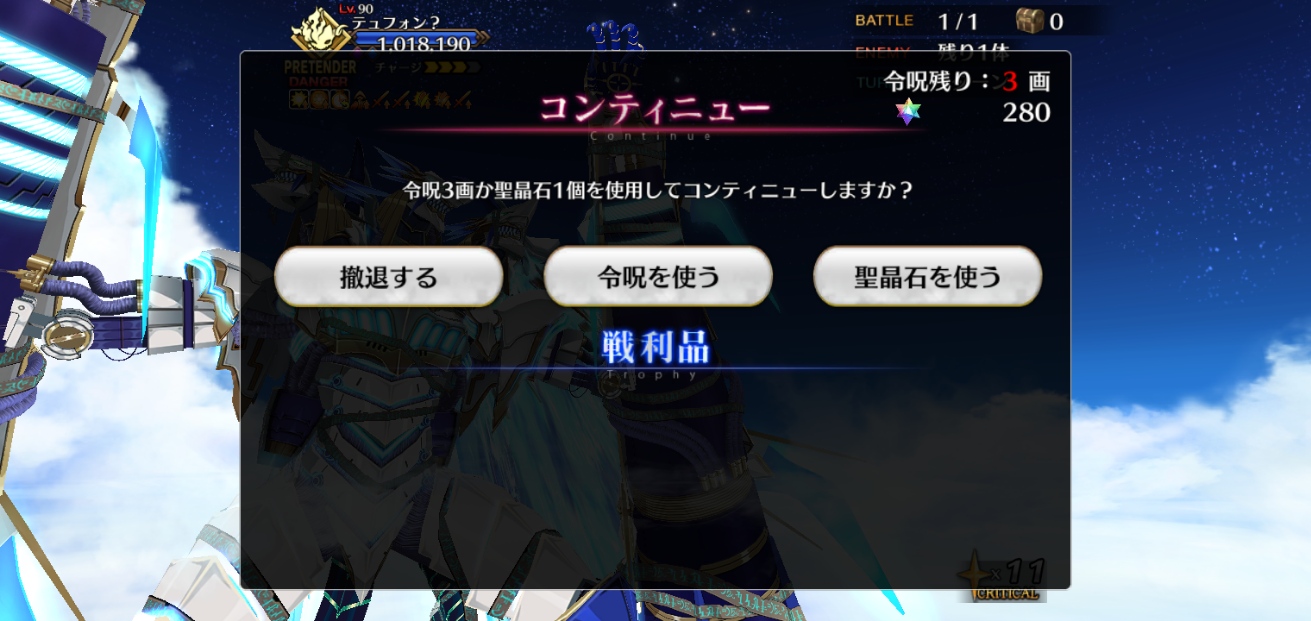 大令呪なら特異点爆破できるって言われてしまったからずっと気になってたんだよね…本当にありがたかったテュフォン君
