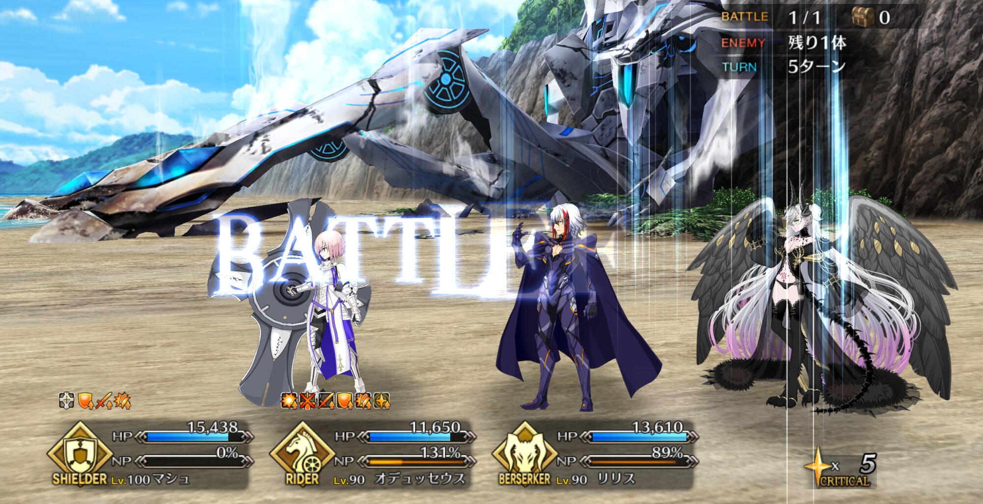 この初手から死地感。機神BGMと相まってオリュンポス感がすげえぜ!エフェメロスちゃんは召喚時ボイスがあざと可愛い