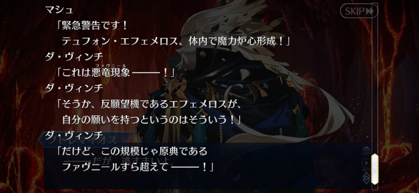 前回のあらすじを微妙に忘れたけど、戦線のテュフォンて最後消滅してなかったっけ? うろおぼえなんだよなライネス師匠がFGOで魔眼使う描写って今まであったっけ?