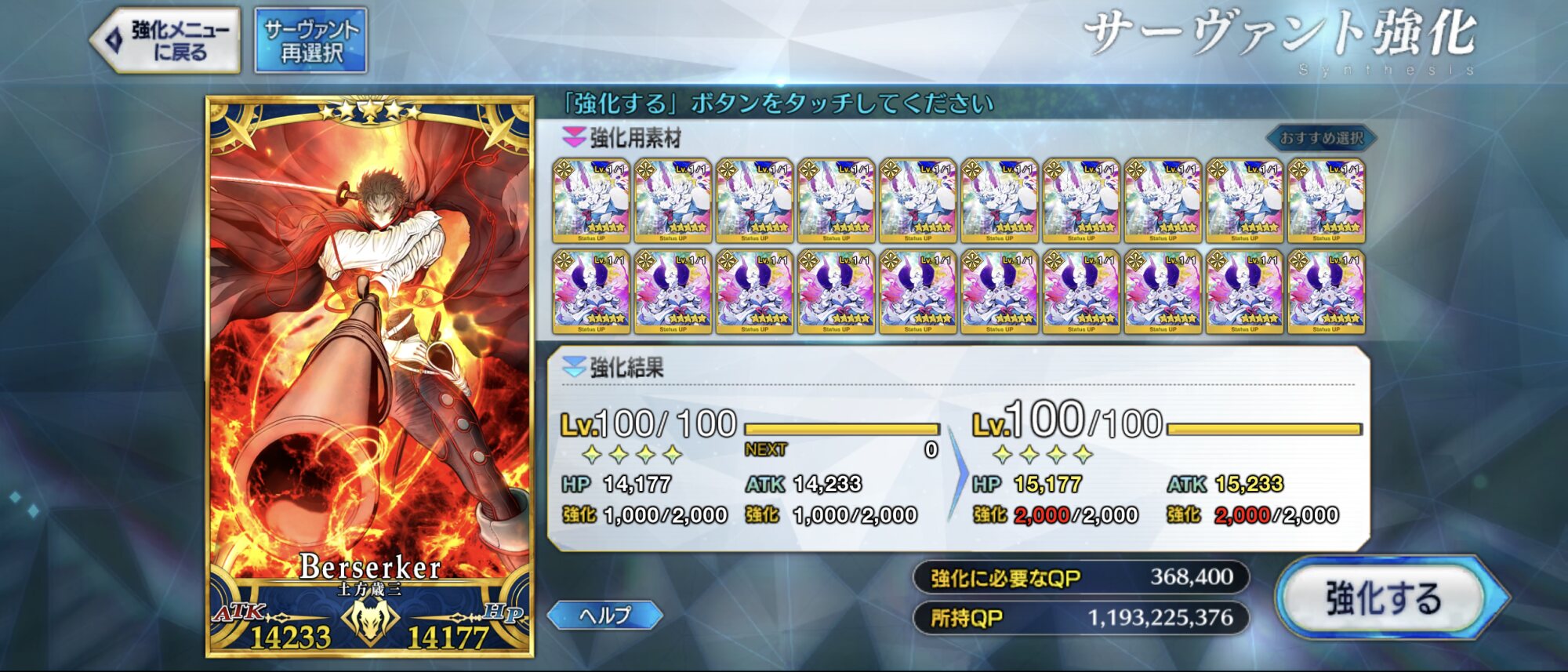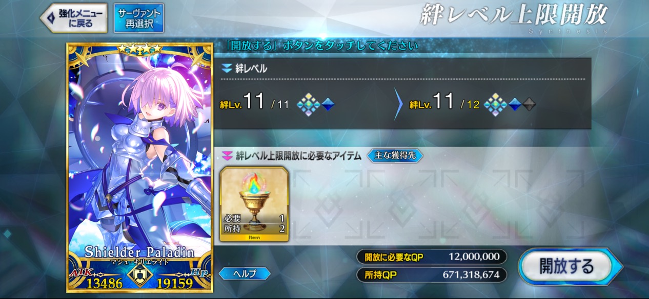 (別ゲーで貴重な能力upアイテムを売却しちゃった奴並感)グランドにするぞ!って予定のサーヴァントはもう+2000になってる事多いのよな