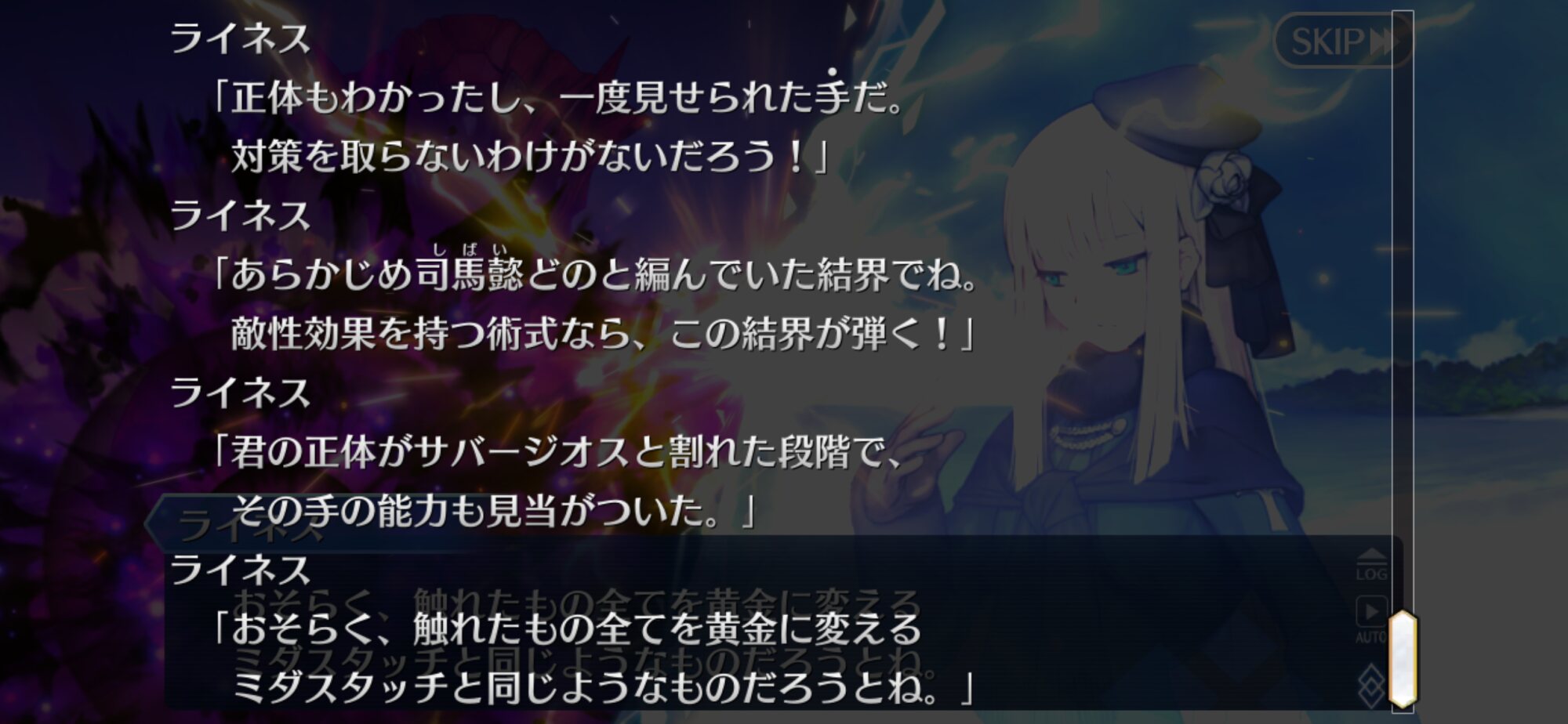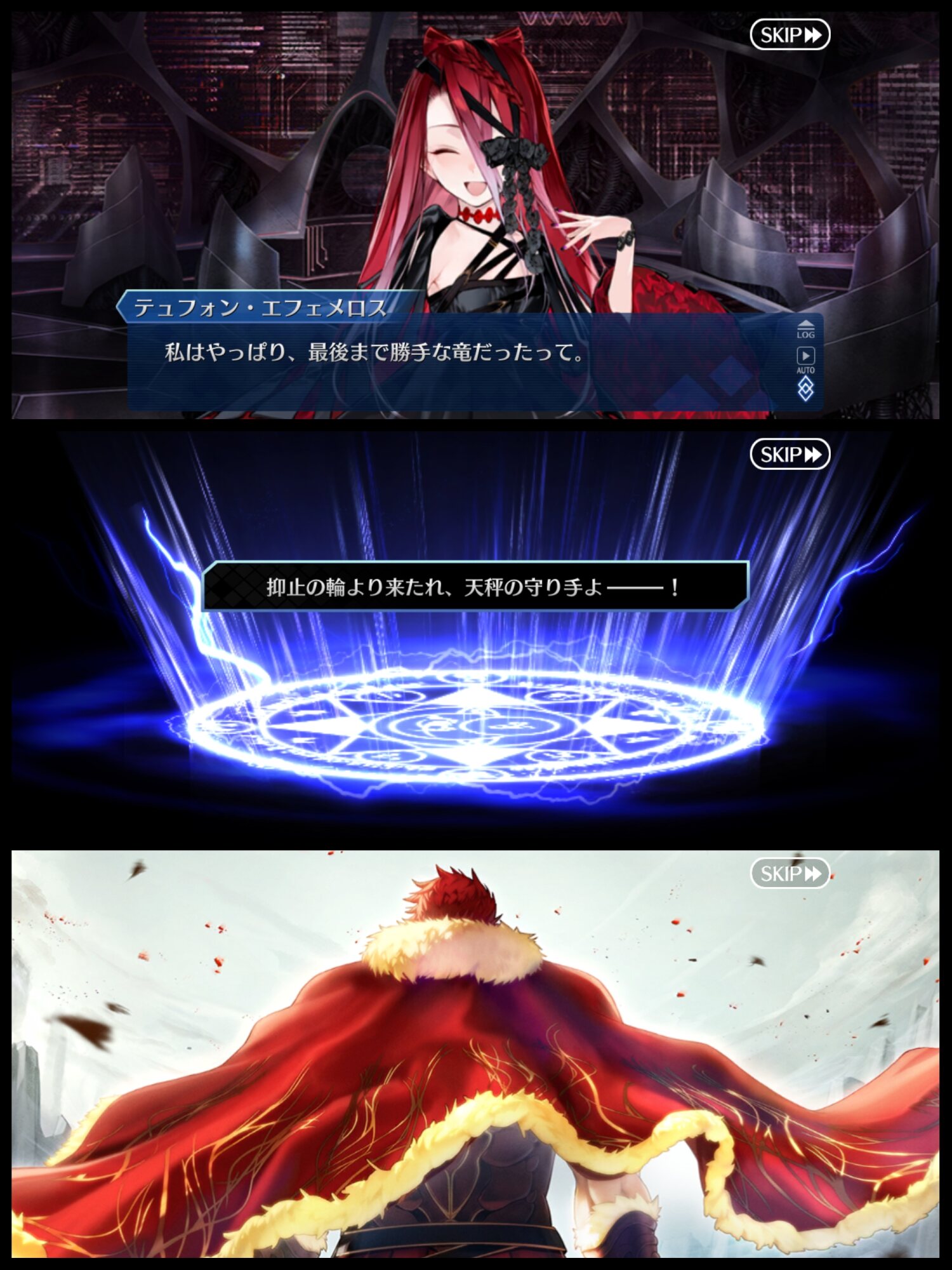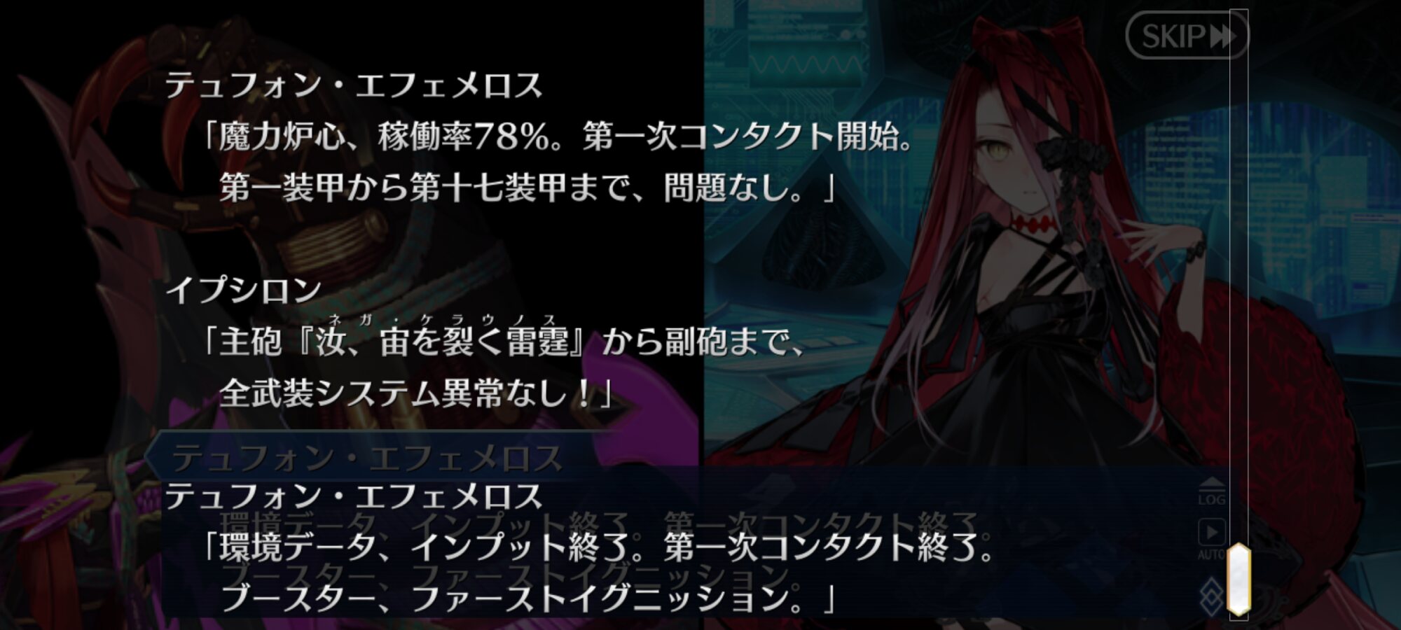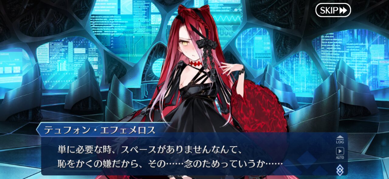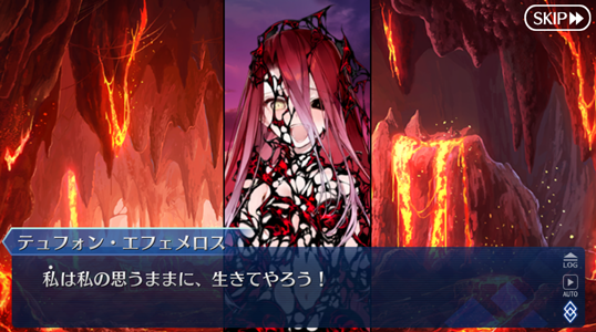 この展開時と再び解除するときとである程度任意に敵味方の位置再配置出来るっての地味に便利なんだよね。アニメでも青王に後方に守られてた青王をなるべく遠くにしつつ凜を自身の近くに配置することで確保に成功してるとか。よく考えたらテュフォンにとってはエフェメロスも内部から侵食してくるウィルスみたいなものなんだよな
