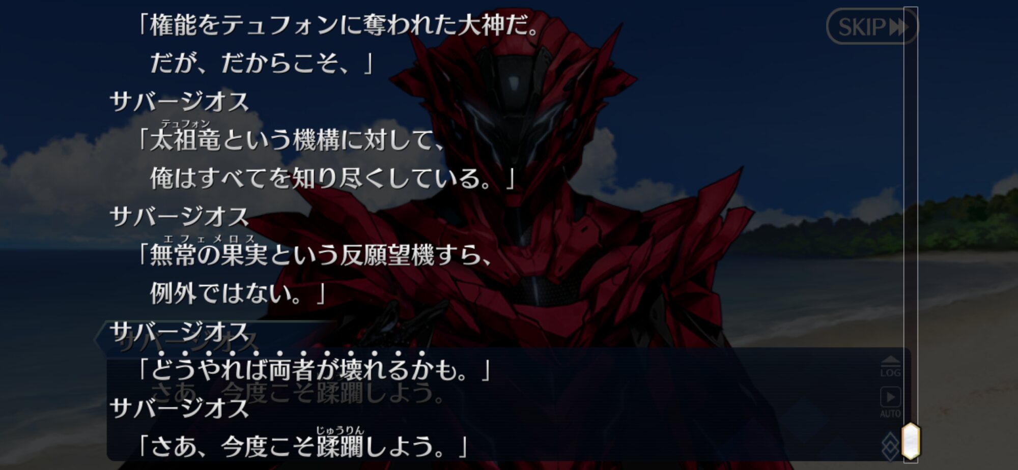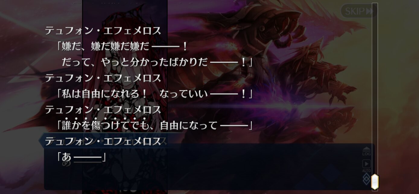暴走するテュフォンを抑えるためにサバージオスがオデュッセウスに霊基を譲渡したりするんだ‥‥言っちゃなんだがアイリさんといいシナリオの出番が少ないのは相応の理由があるもんなんだなって