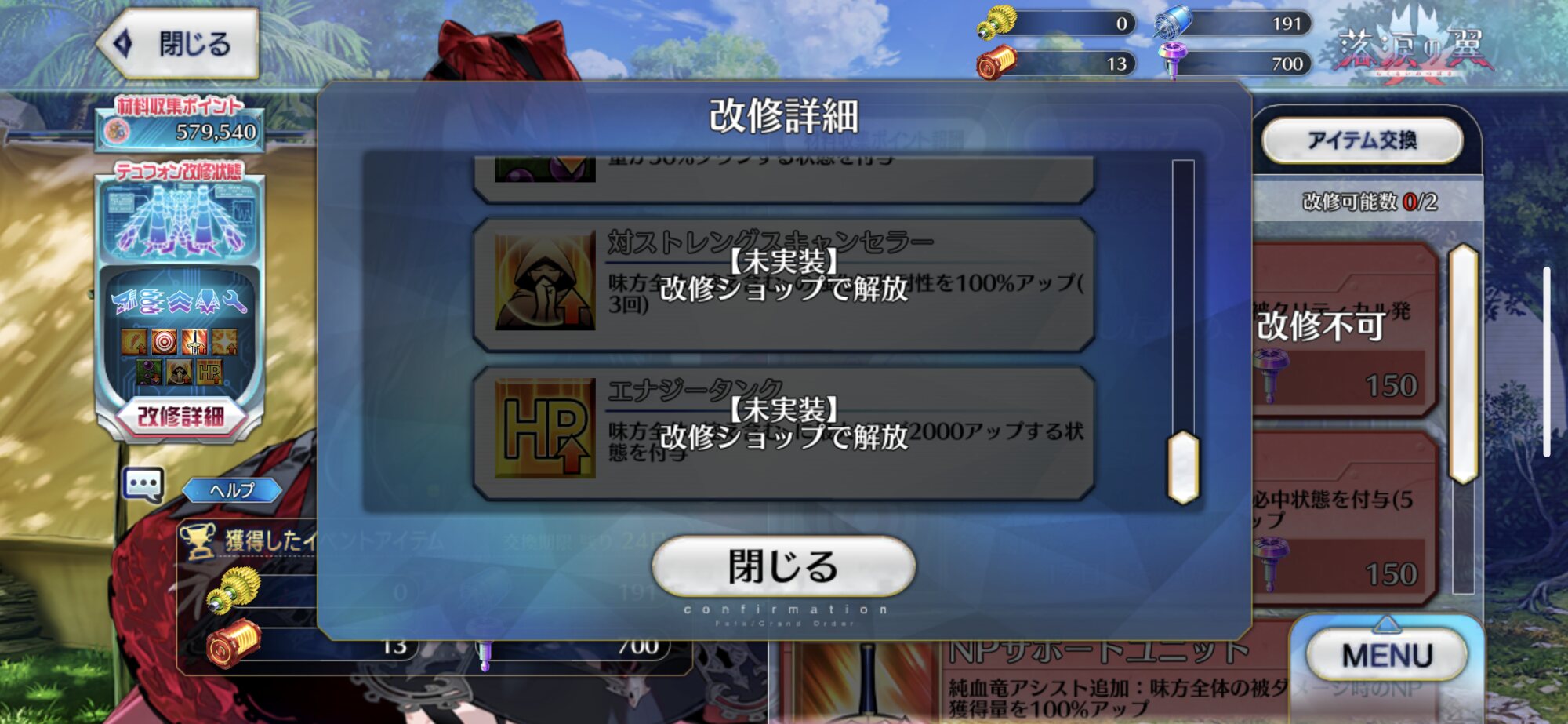 そういえばテュフォンで造っているという体裁だけど、さすがにテュフォンが手元に無い現状でもアイテム交換は出来るんだな…。