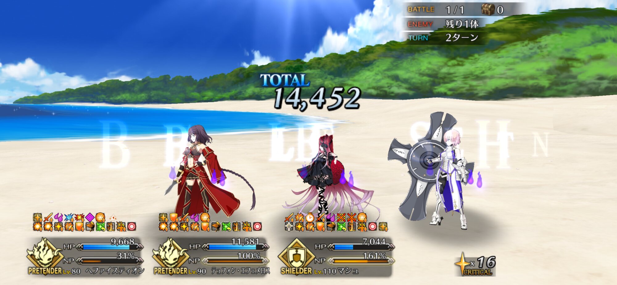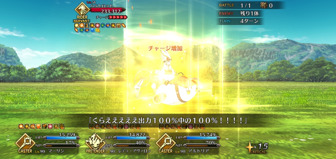 手持ち次第だと味方の宝具OC上げるのとキャストリア(サポもあり)と組ませるのもいけたなしかし……貫通力ある宝具を耐えろってステラ以来かな?