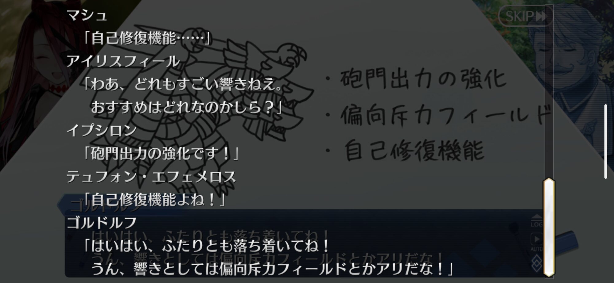 テュフォンの竜体を改造できるチャンスだよ