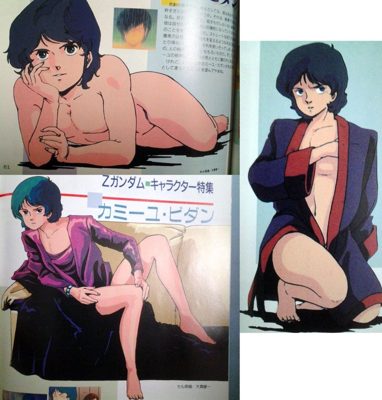 大体同時期のボーグマンのアニスとかマシンロボのレイナあたりもアニメ雑誌のピンナップでエロ衣装をよく着ていたわね。シュウジの髪色的にはカミーユが近いすね
