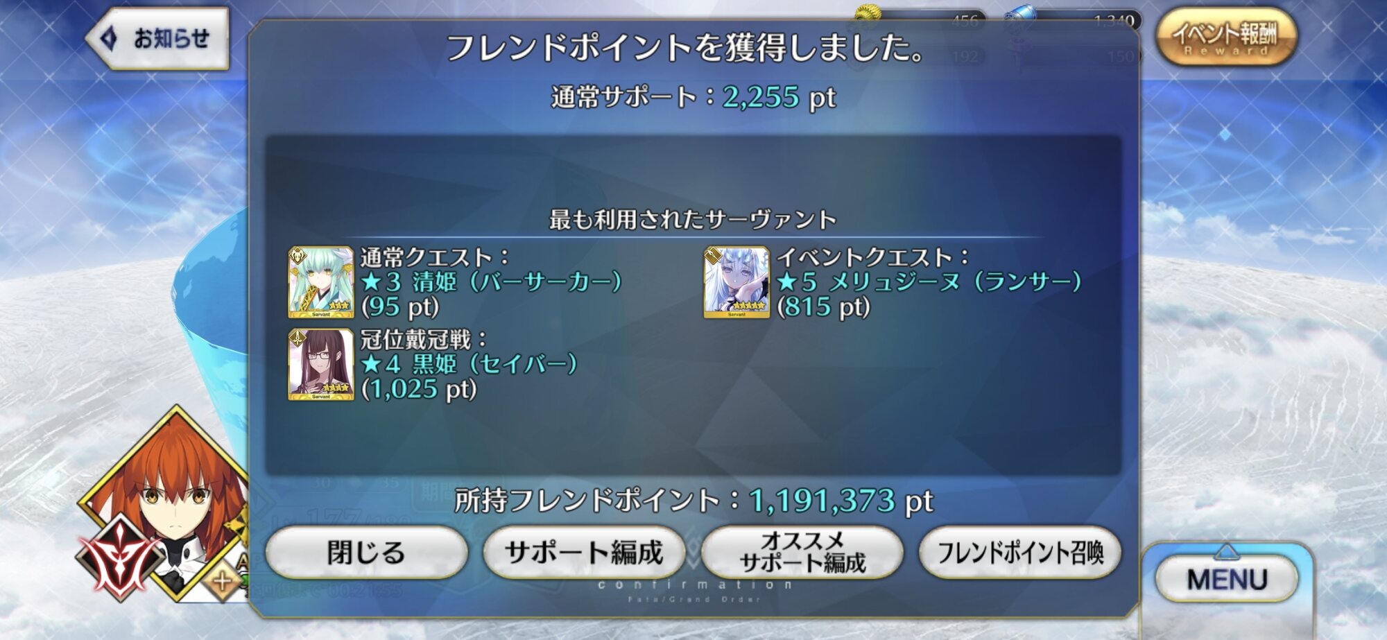 それはそれとしてこの調子で全クラス獲得経験値2倍キャンペーンがあるなら勇気を出してもう一騎レベル120作っても…と思いつつもそもコインが足りないのを思い出しました