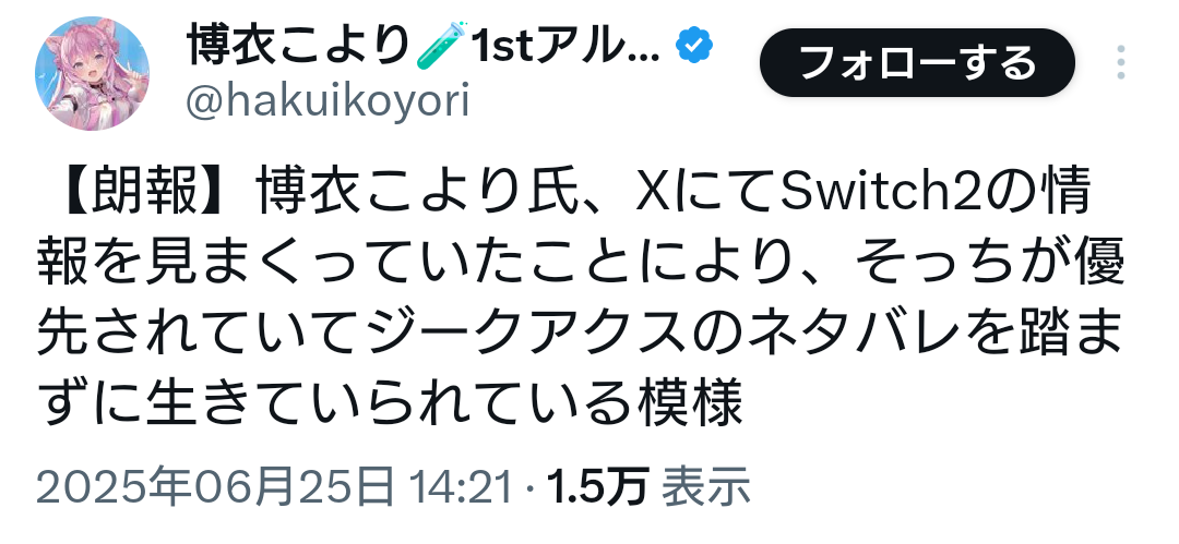 おちゃめなタイプだとなお良しSwitch2が当たらないという傷をあえて受け入れジークアクスのネタバレを回避する肉を切らせて骨を断つ戦法