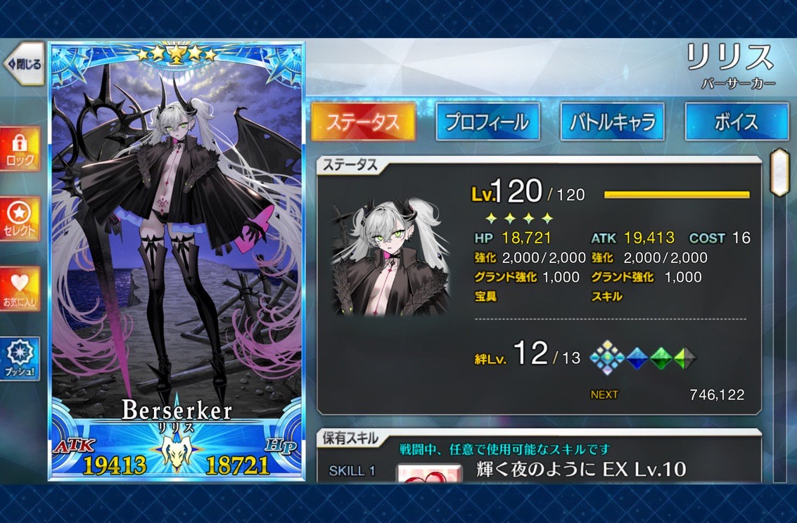 戴冠戦終わったら少しでも青林檎作って備えようと思ってたとこなのじゃがイケメン女子が大好きだからバゼットさんのこと前々から気になっててちょこちょこ調べてたし、兄貴で囲みたいって思ってて、実装された時めちゃくちゃ嬉しかった。その年は200連くらいしてこなかったけど。うふふ。