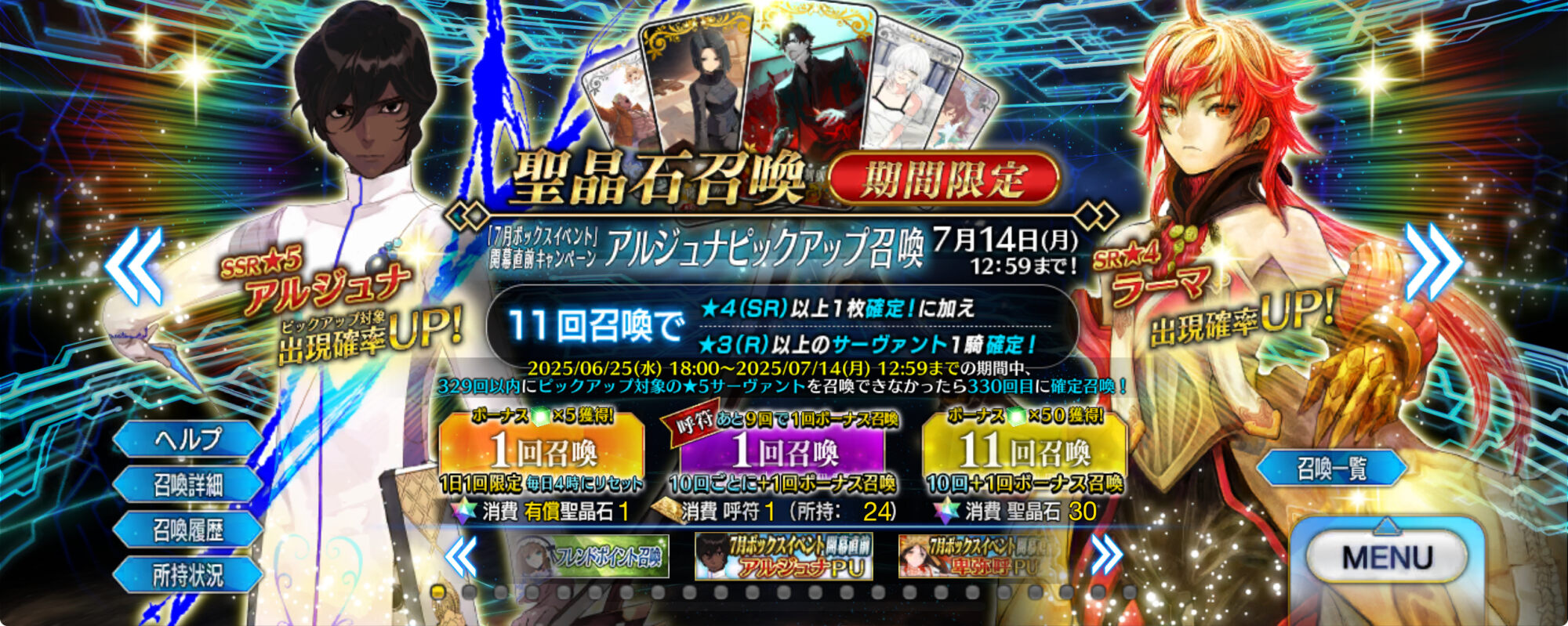 「おかしいんだぁよ。クリスマスと狂戴冠戦で散々働いたはずなんだぁよ…」アルジュナとラーマがピックアップ期間長いからアルジュナはメインに出るか?