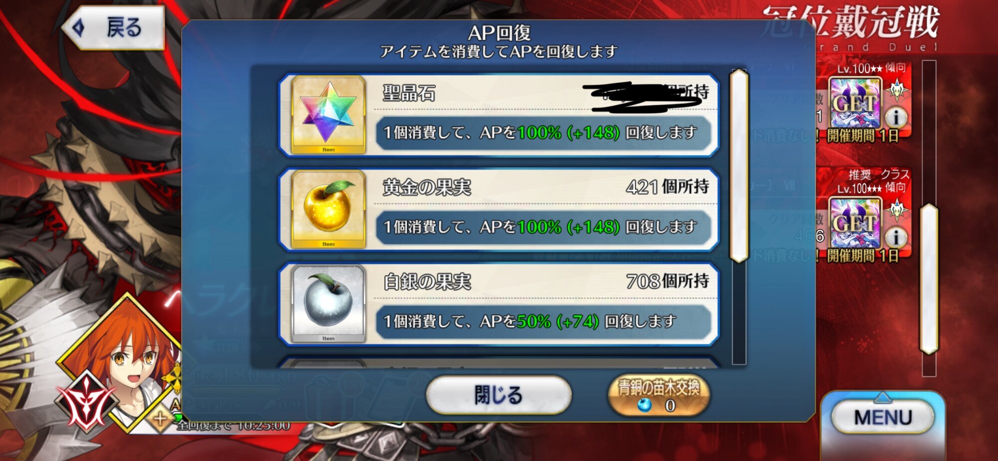 全クラス分の戴冠戦やるまでのどこかでボックス入るなと踏んでリンゴの消費抑え目にしてたからバッチリだぜ