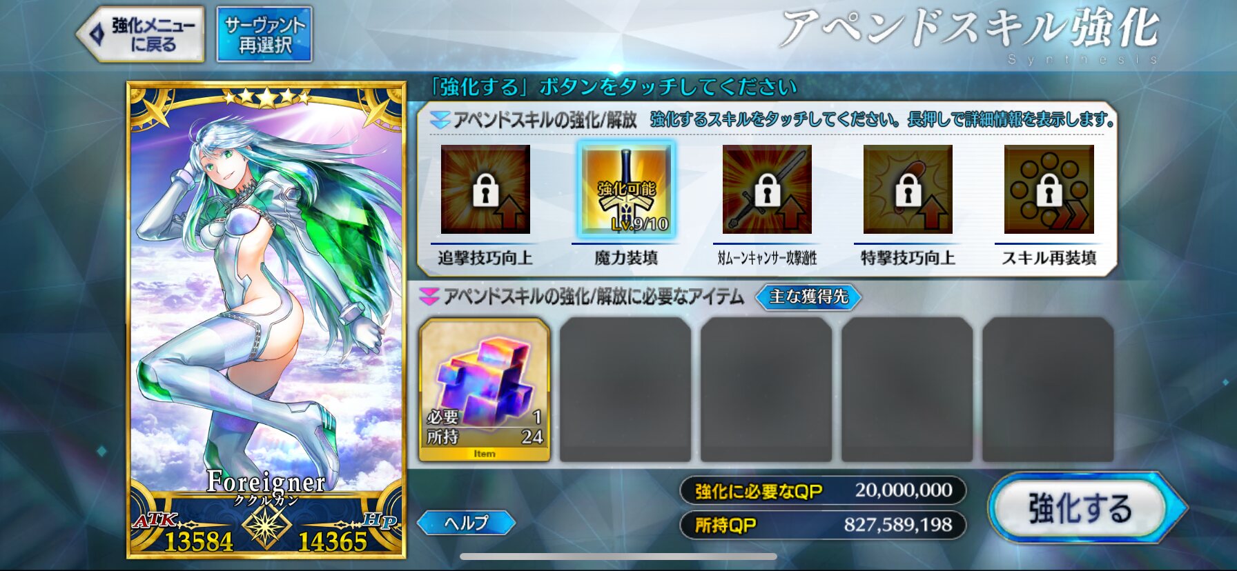 上限解放+冠位戴冠戦でよほどのことが無い限りQPが足りなくなることは無いだろうね