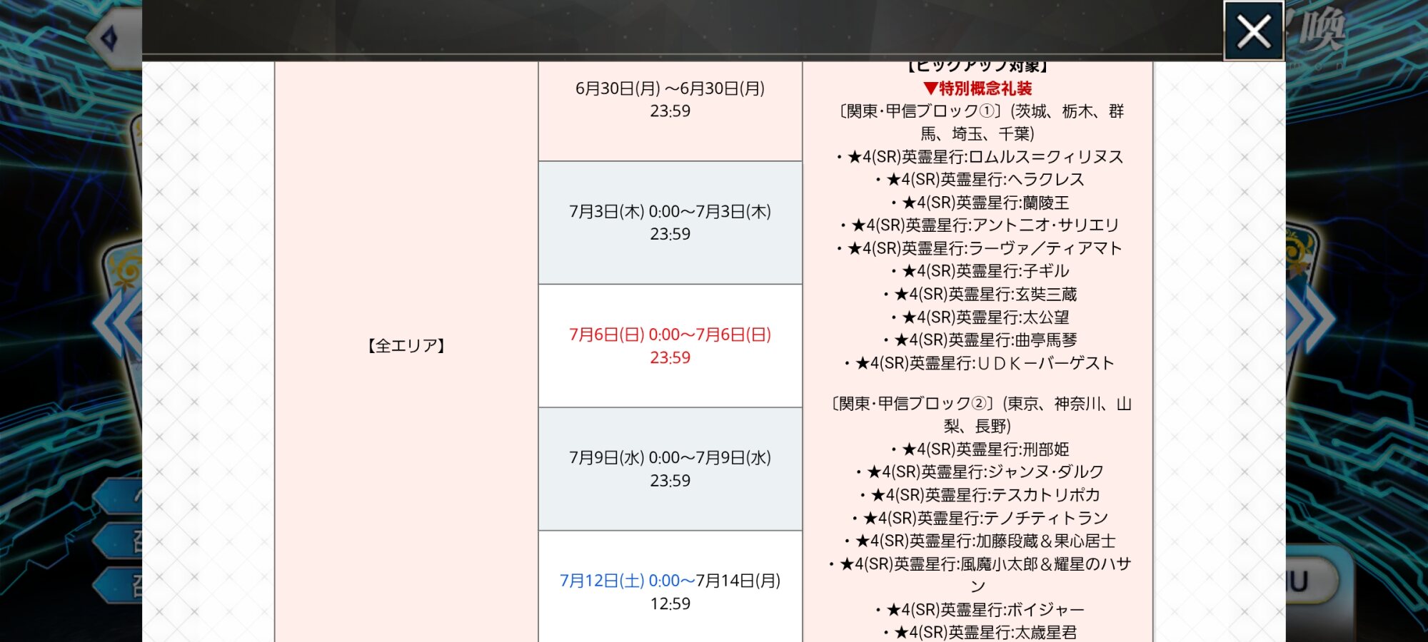日替わりで全エリアと1と2で別れて14日までやるよエモーショナルな文からの突然のビジネス許諾でちょっと笑う