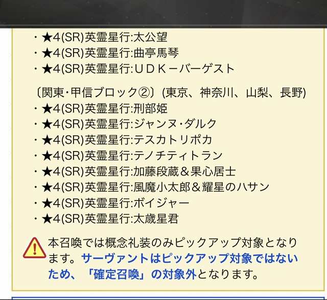 それ見て思ったんだが礼装目当てのこのガチャで星3以上のサーヴァント確定ってむしろハズレ確定になってない?これ今後の地域もあるってことじゃないですか!