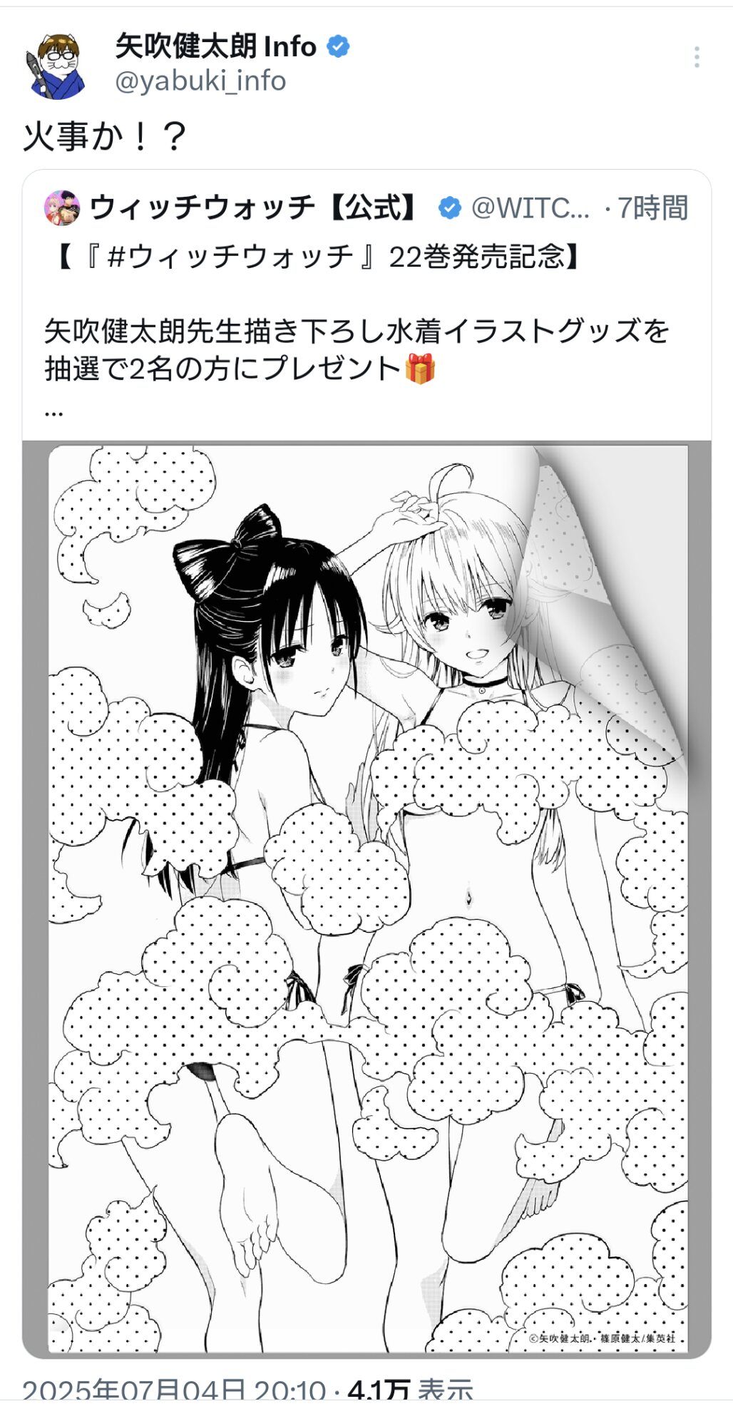 https://x.com/ichijouririka/status/1941446839267623319?t=Hdhvv1j_hyqncigzsbJ6tA&s=19今日の24時までウィザブレの短編公開!!