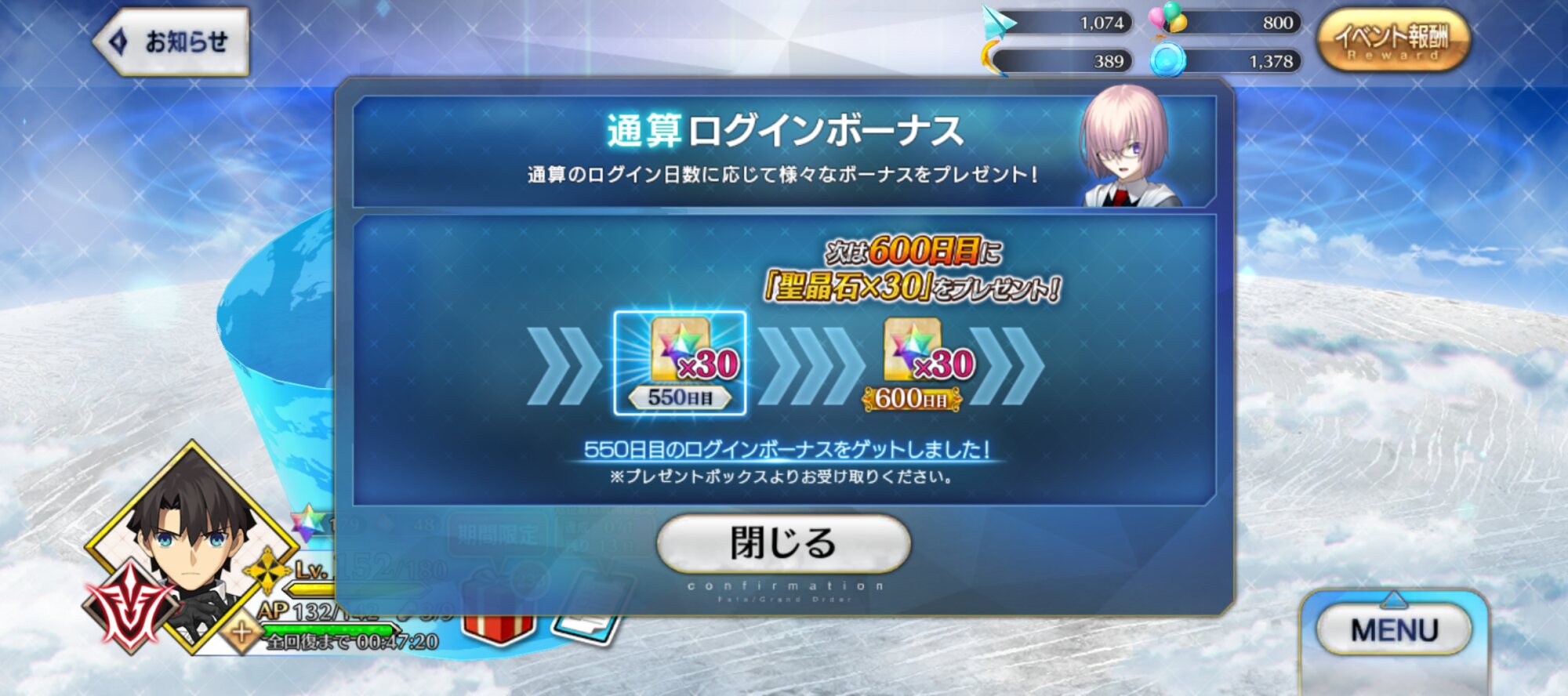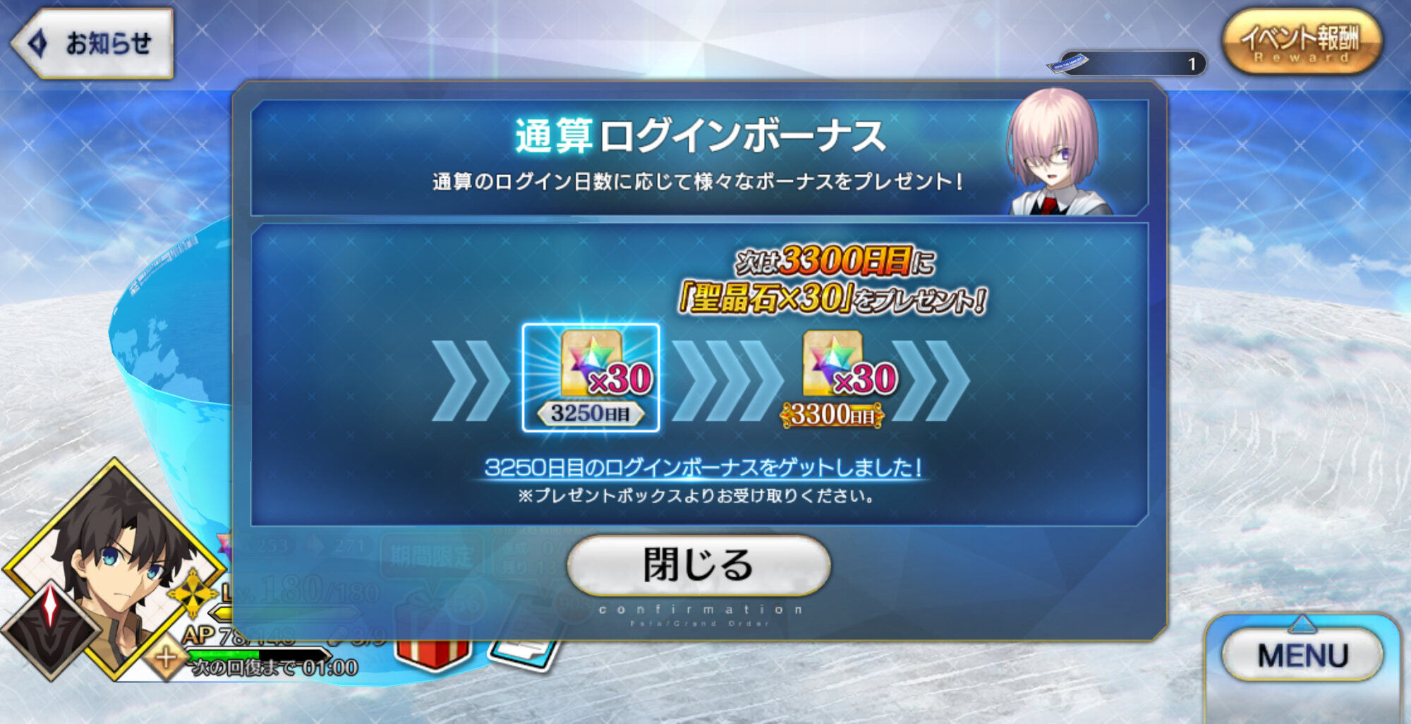 シータ!シータではないか!自力で呪いを解いたのだな!1年前からFateコラボやるよって告知してたのは優しいと思う