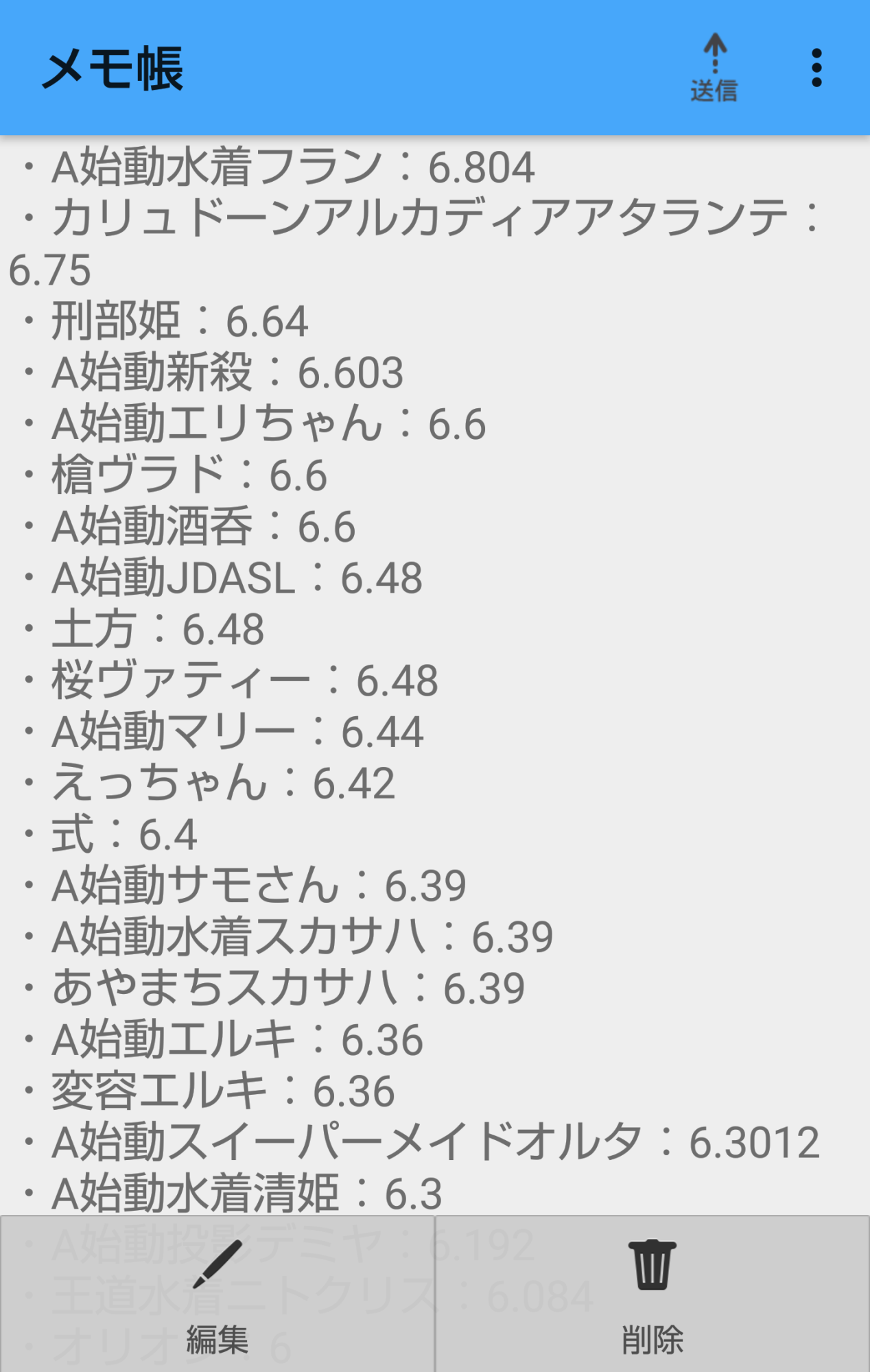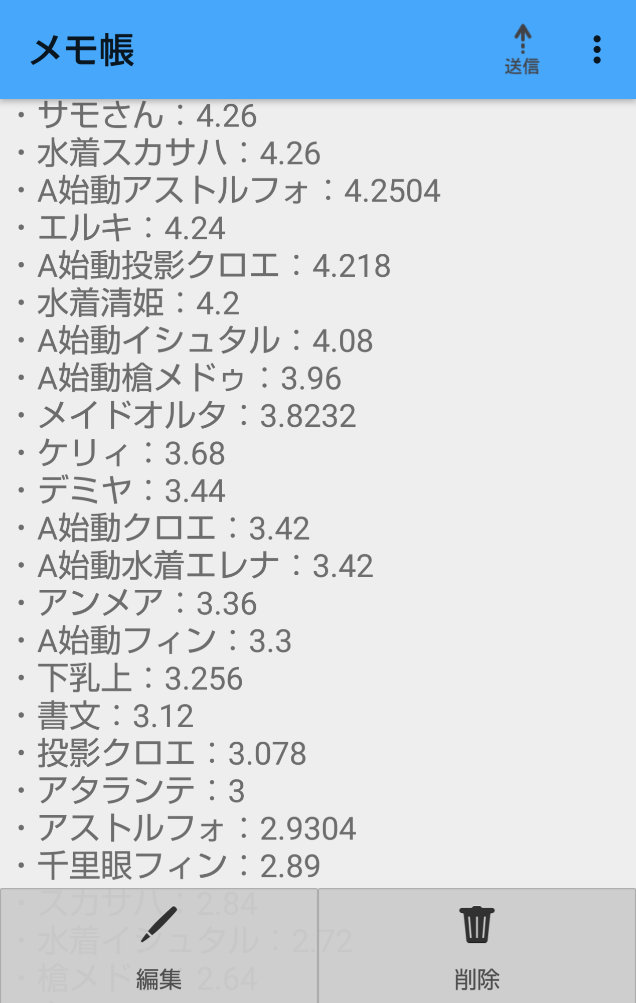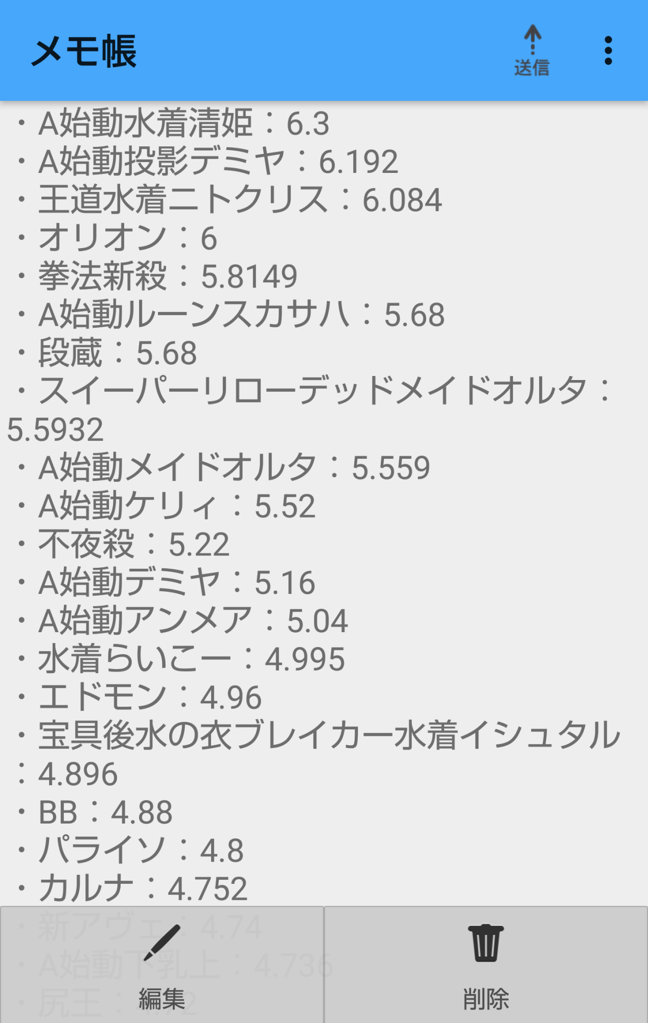 低レアは数値を取り切れてないのでまた後日。