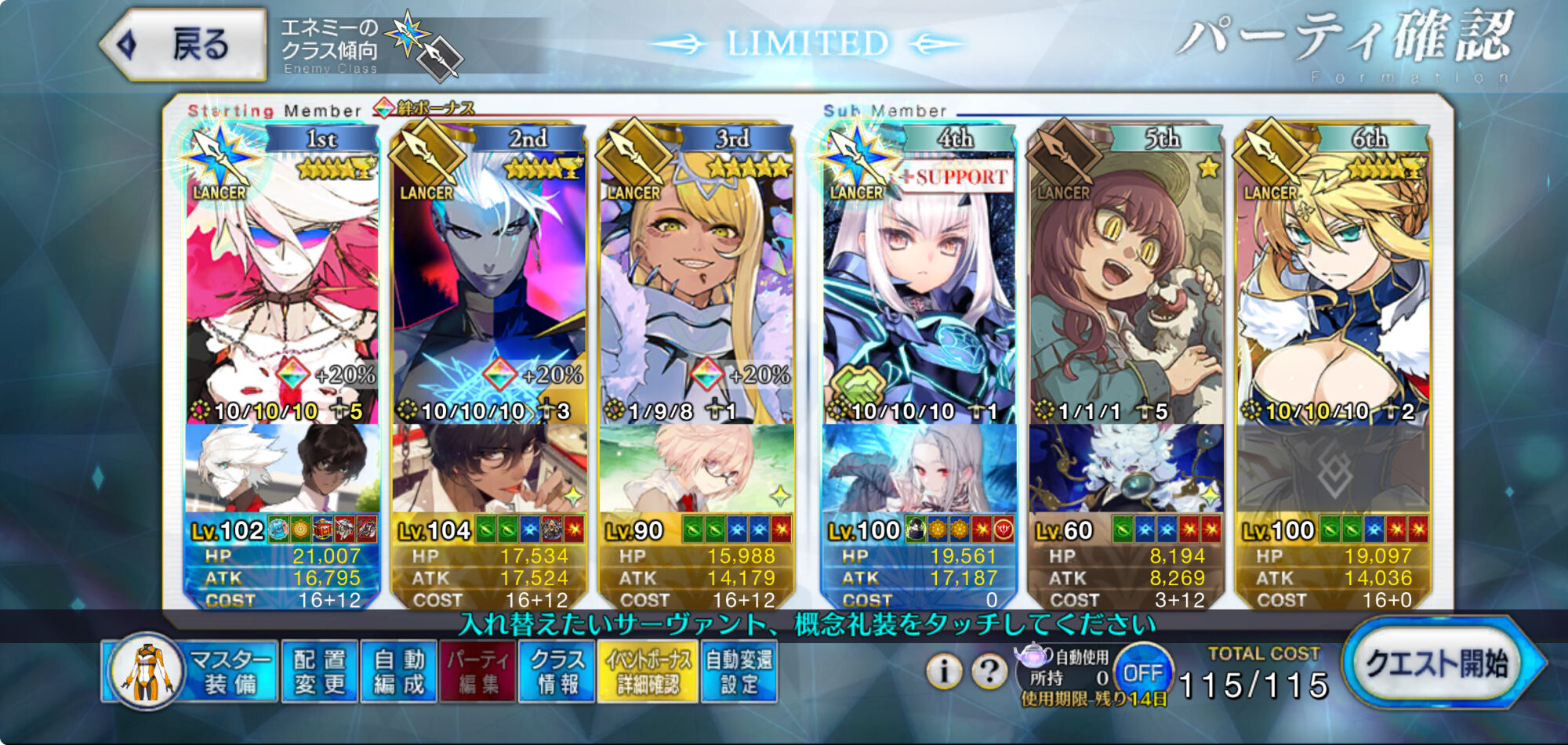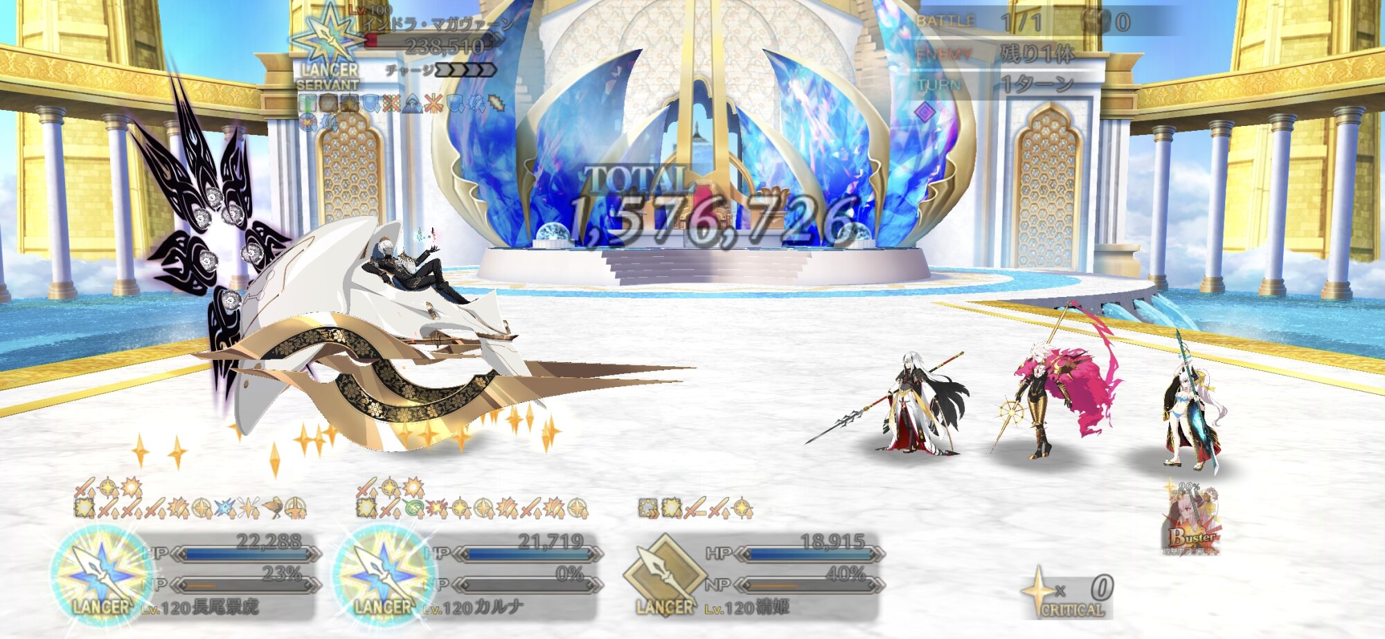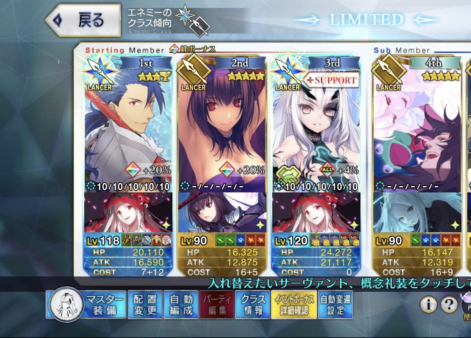 難しい所。今回はそれこそマスターの数だけ編成ばらついてる感があるのと難易度から未だ安定の周回模索してるマスターが多い(平日というのもある)のでまだTT当たりの方がいいんじゃないかな?あるいは単純に絆編成でなくガチなフォウムズやNFFあたりのATK高い奴の方が喜ばれるかもしれん>>10