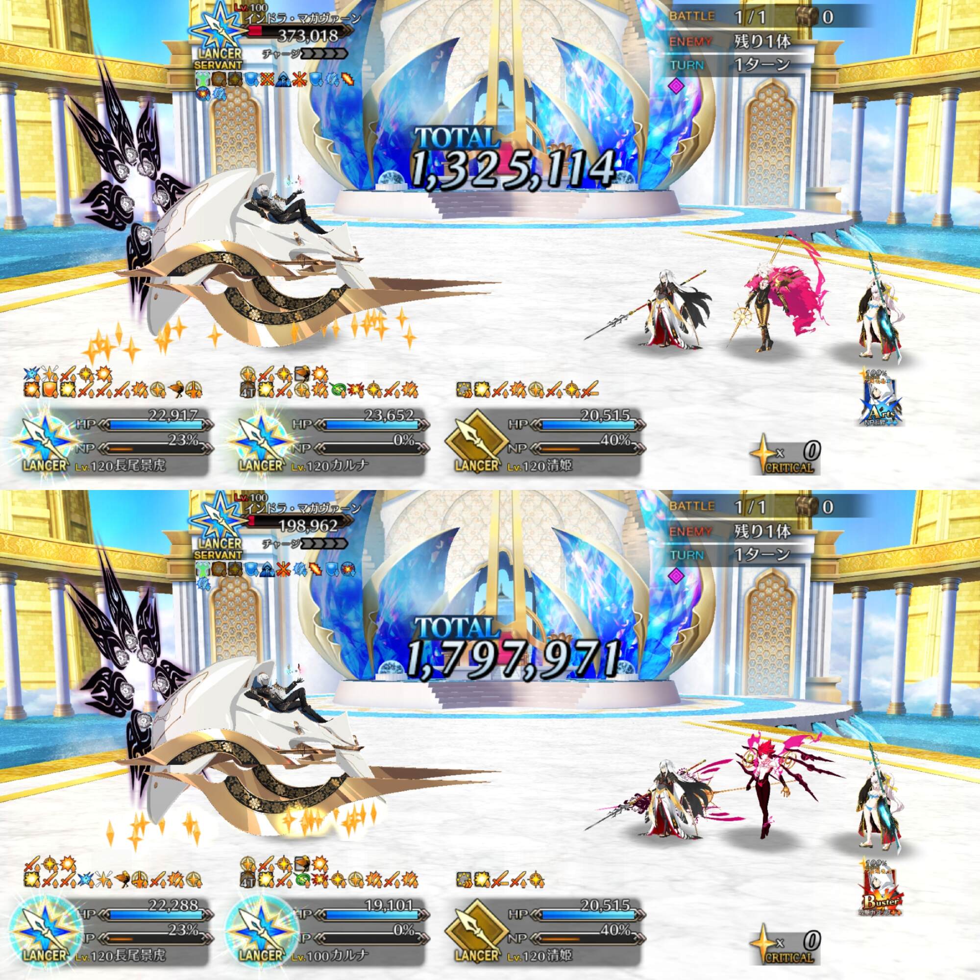 第1部の時点で極大核兵器威力な槍のカルナさんと宇宙を何回か焼き尽くせる威力の宝具のアルジュナさんがいたのに特異点通り越して地球が消滅してないのが奇跡だよな…雷帝で次回の戴冠戦するの心配だったけどいけそうだな!