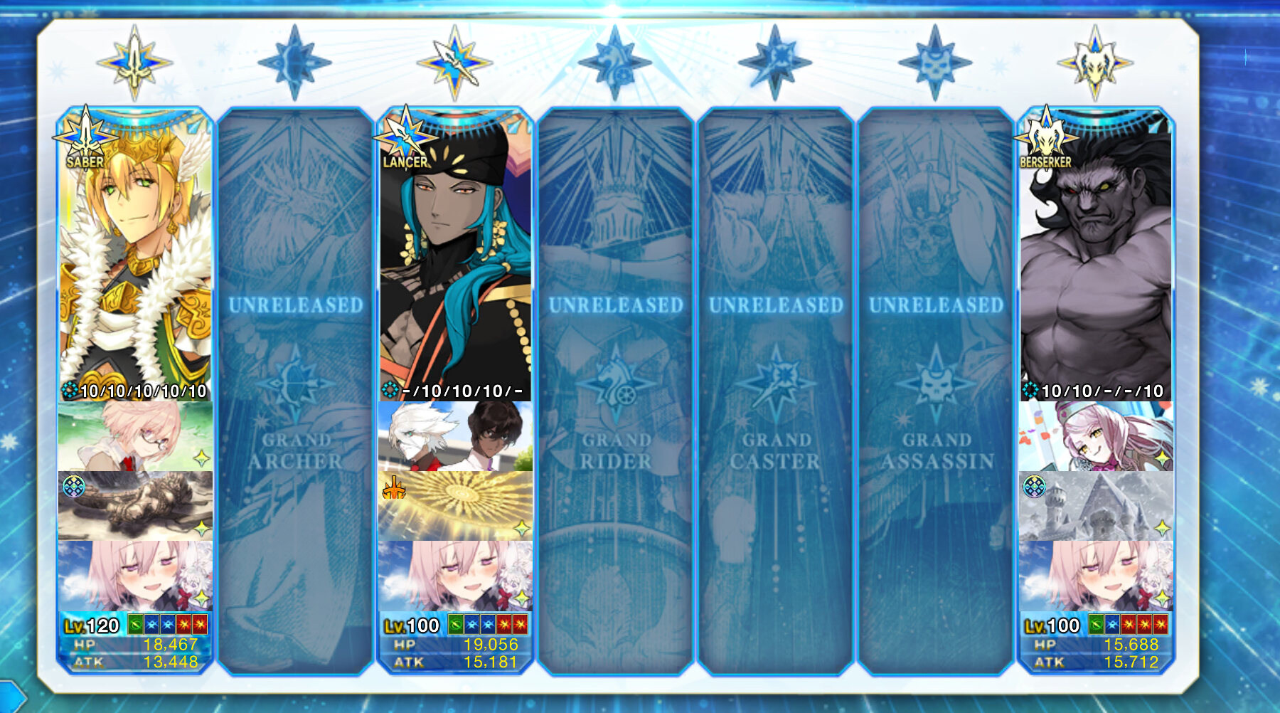 うちは白槍王グランドで後衛にガレスちゃんや頼光さんとか入れてる関係で秩序善女性のパターンですわね。インドラ実装からの冠位がありだから、ラストのキャスターはソロモンorゲーティアっていうのも無しでは無いのか