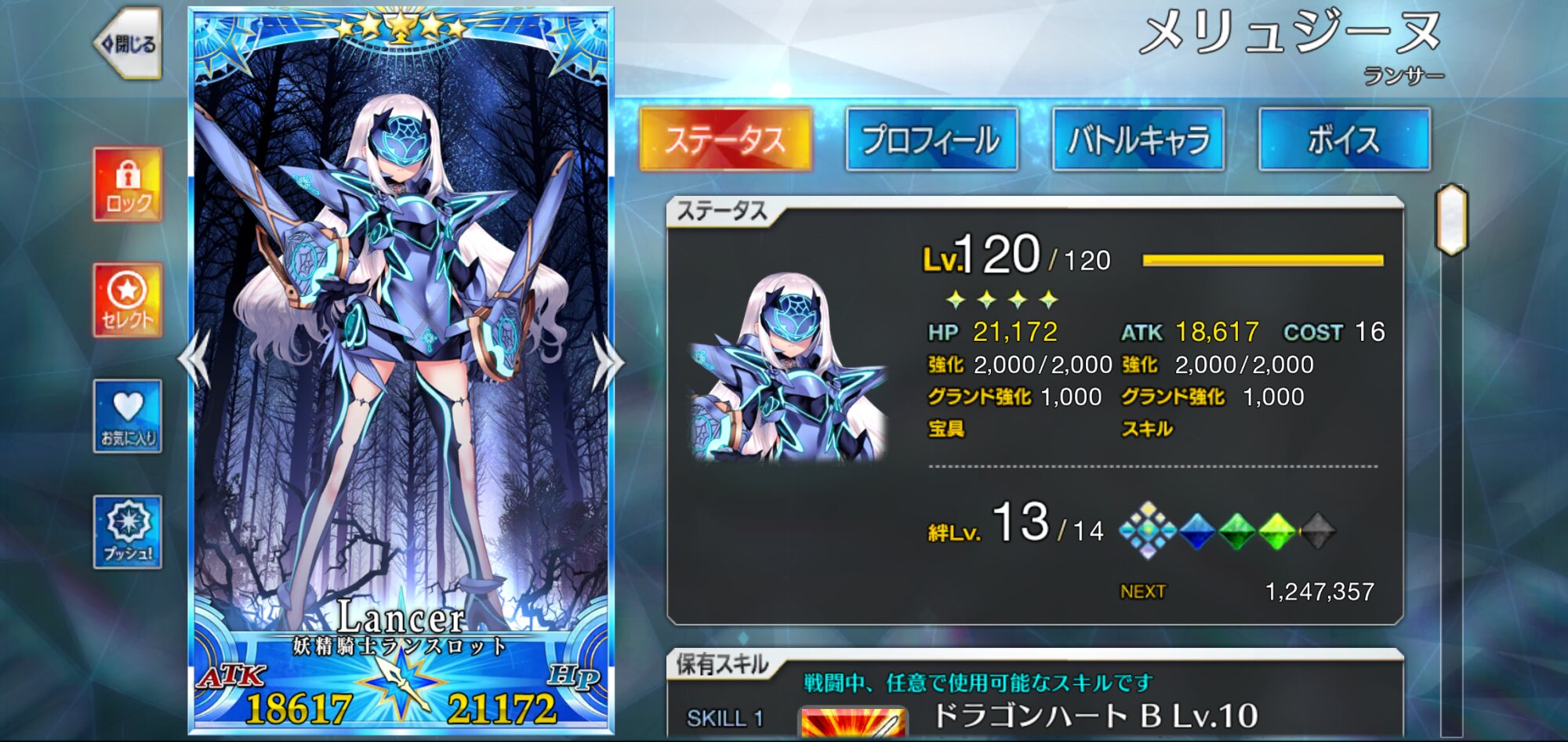 『汝、宙を裂く雷霆』持ってるから実際にランサー適正持ってるかもここでランサーバフのおすすめにエリちゃんを前に勧めてもらったけどさ、本当に強いんだな