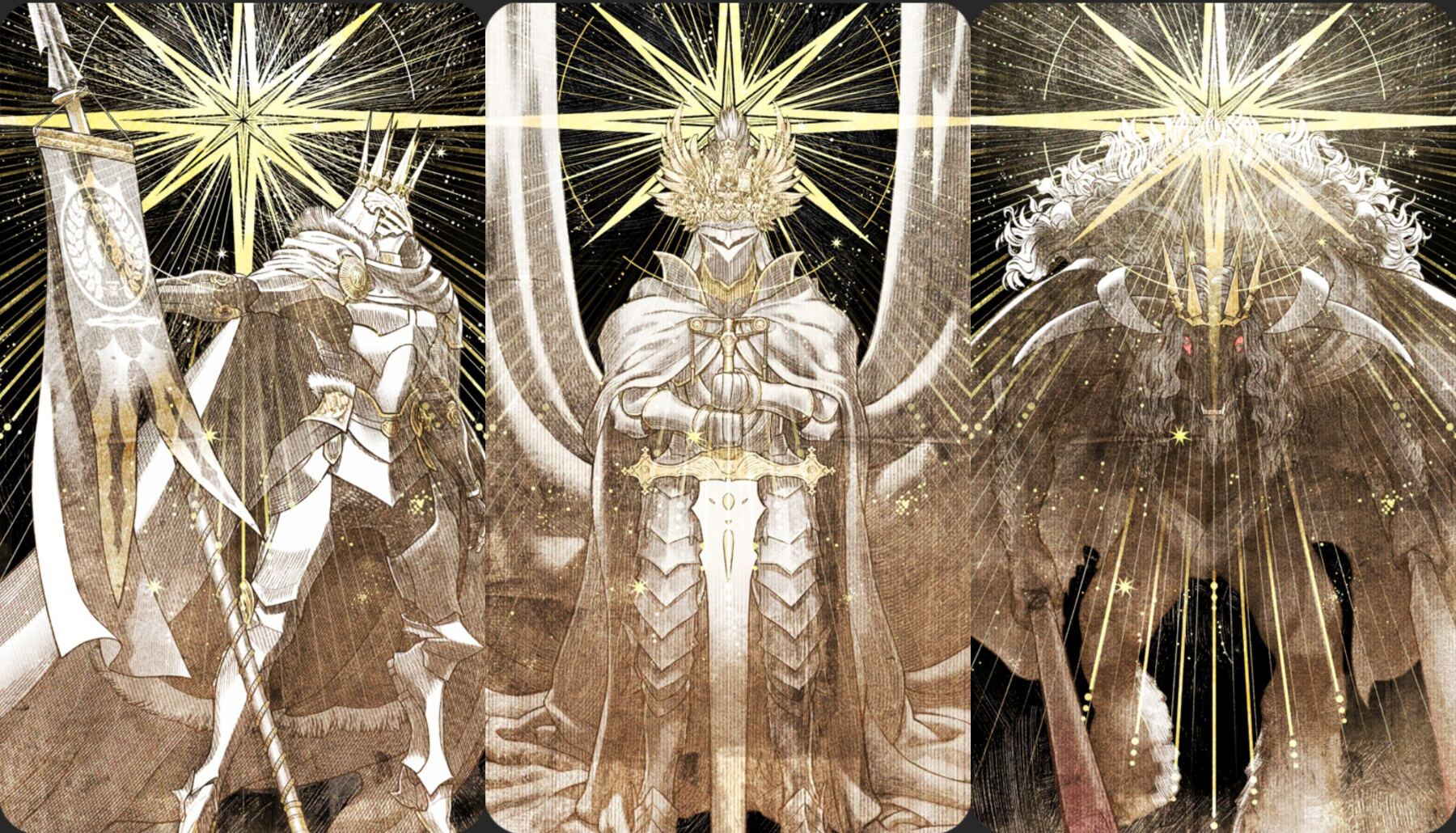 サツカディもっとこう 現世に顕現した悪魔を祓うために金とか銀とかその他諸々の鎧纏ってぶった斬る騎士みたいなの型月に出てこんかな フツーに生身でも強いタイプで