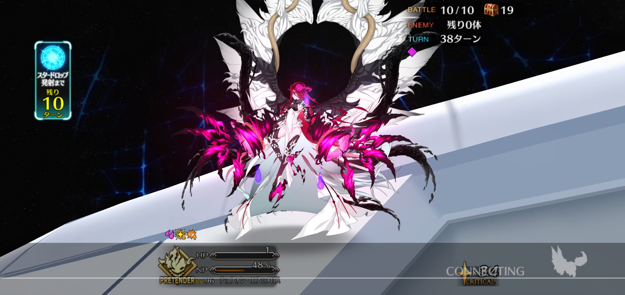 宝具封印+スキル封印+解除できるキャストリアの脱落・・・・>>40ティフォンがゴッフに「願ったな!」したのと同じ理屈かね、あれは厳密には反転だけど