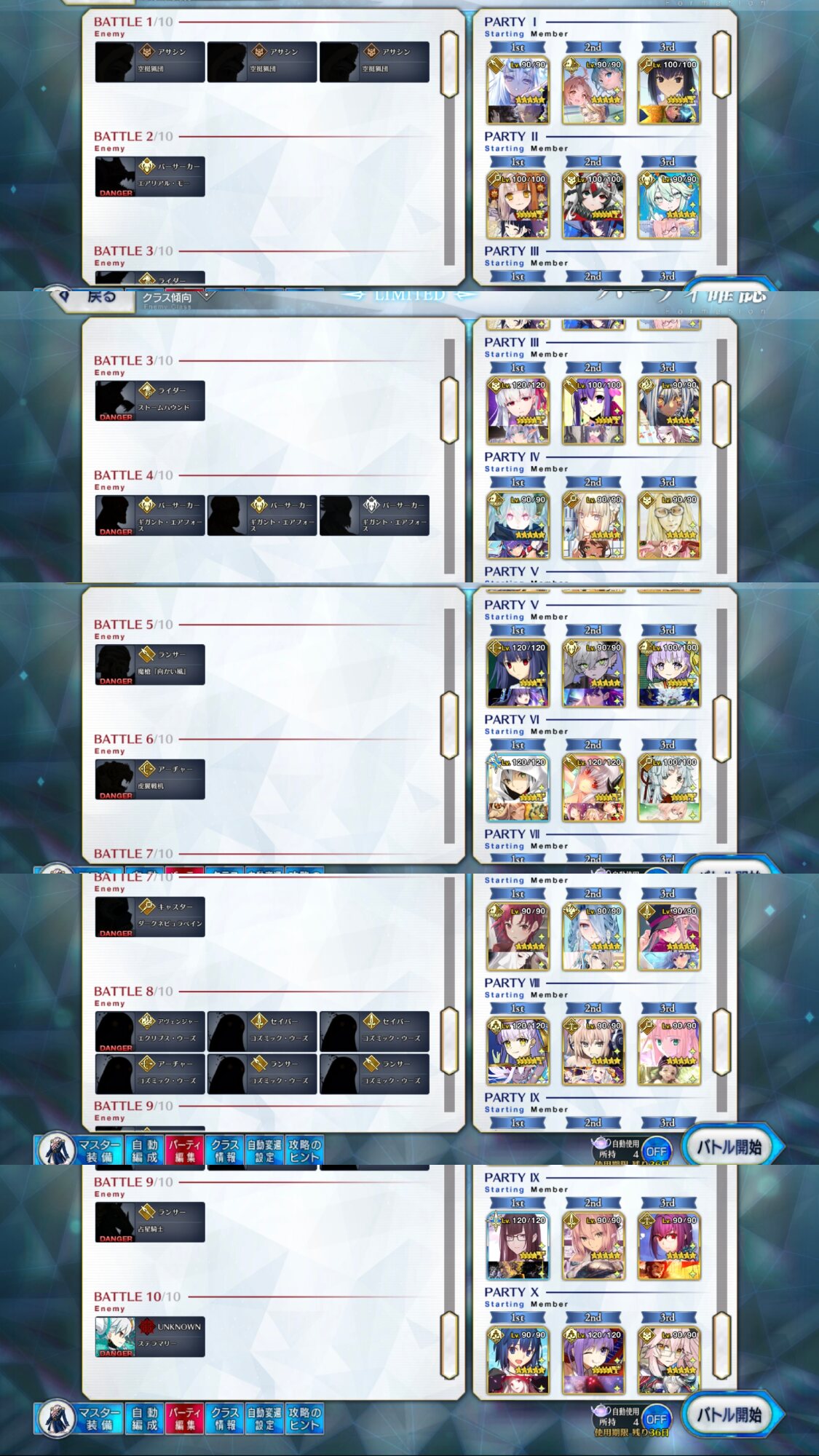 1ー2ゲージ用、3ゲージ用、4ゲージ用の計3パーティーあるとオススメ