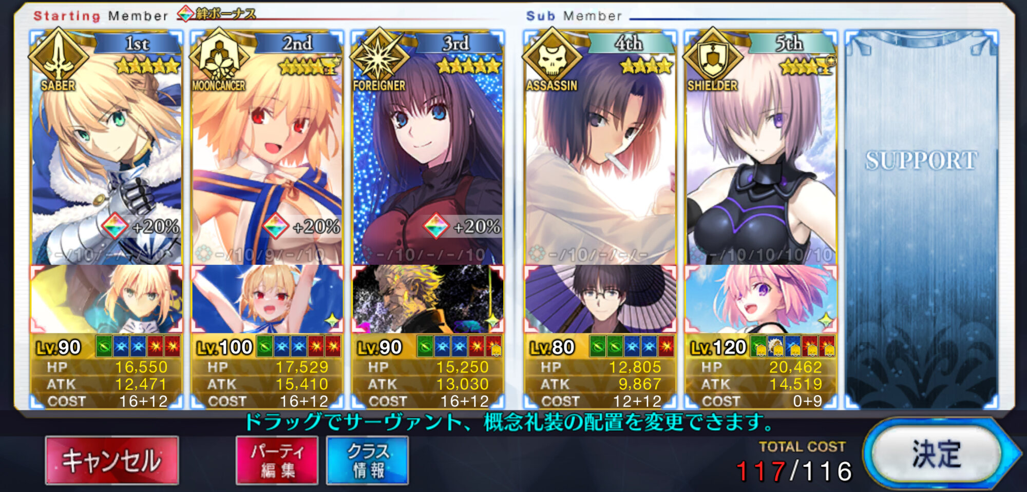最終日のメモリアルクエストでもらえる「???」の内容によってはまた吟味が始まるけど、とりあえずこんな感じで!!MLv180は純度334%くらいのネタだからな!?