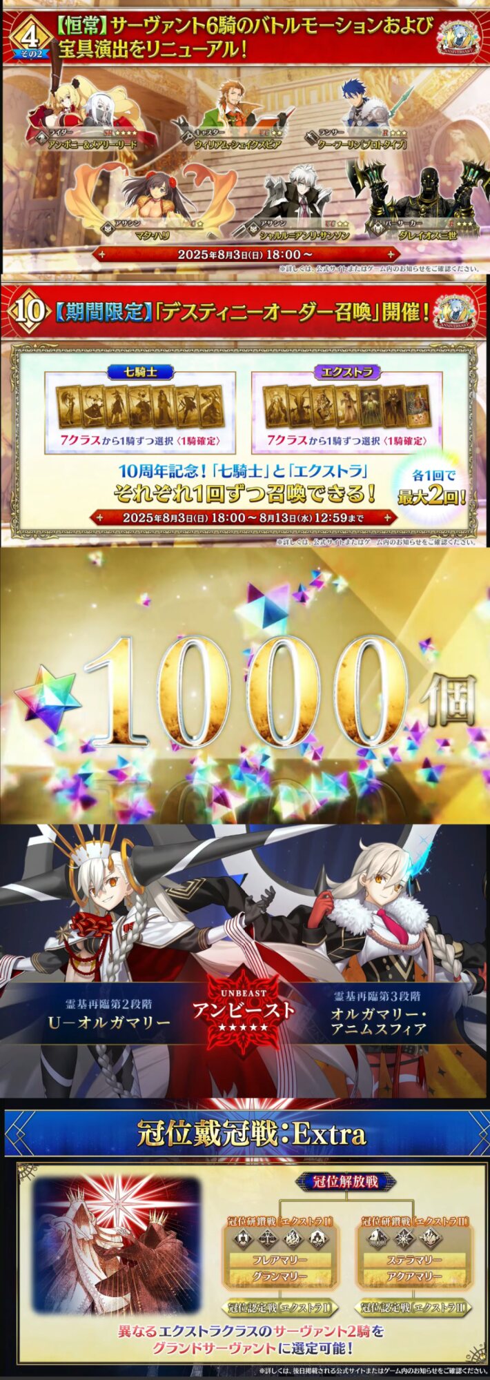 まああそこパイセンの例見るに座からも何かしらあれば来れるっぽいから会場としては最適なんだろうけど周年絵アルトリア居なかったから冠位アルトリアが周年やな