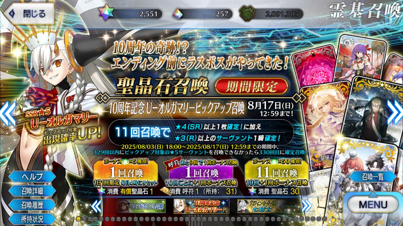 当然だけど今日は〜〜〜じゃじゃーん♡こちらの記念すべき10周年サーヴァントのU─オルガマリー様のガチャを回していきたいと思いま〜す♡