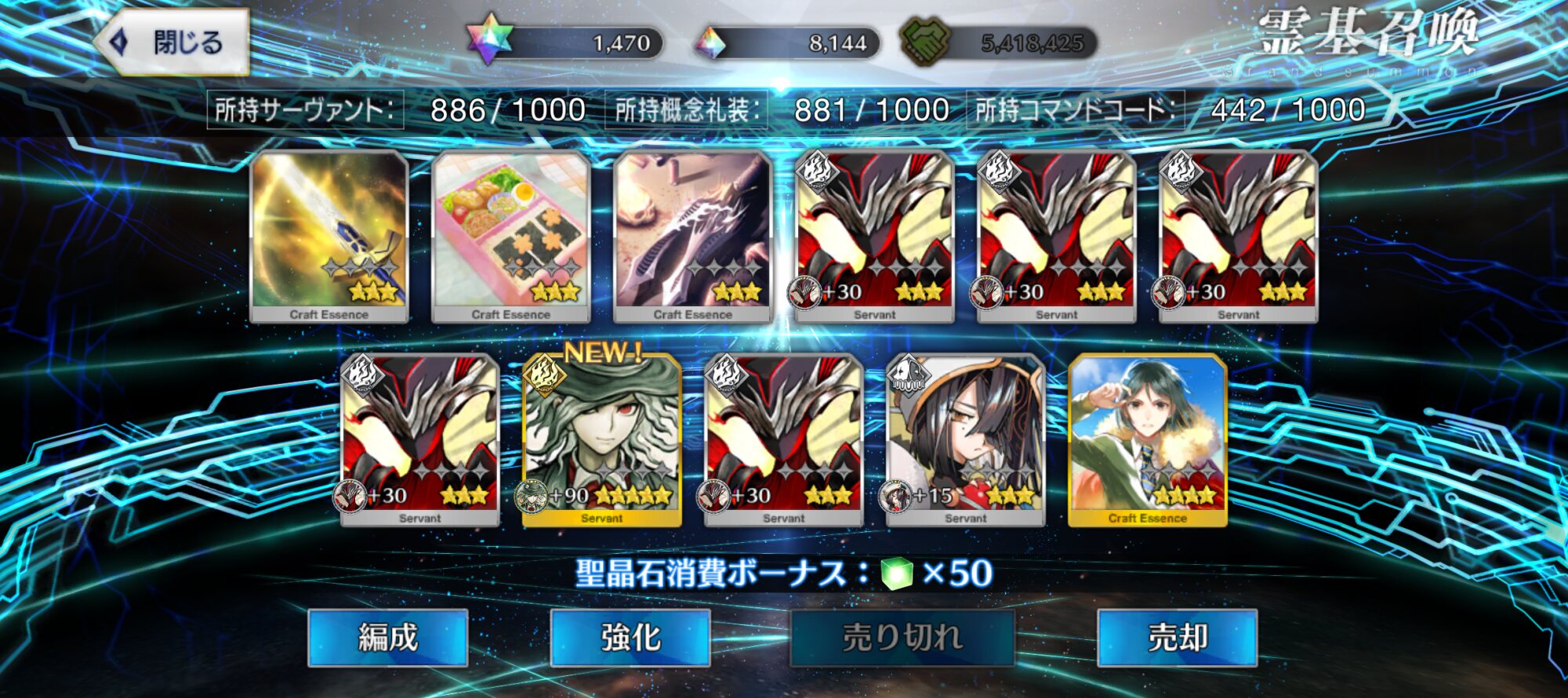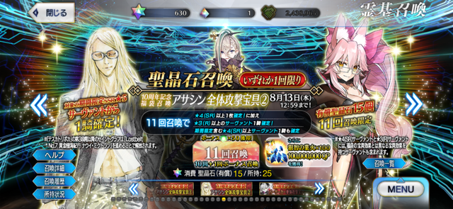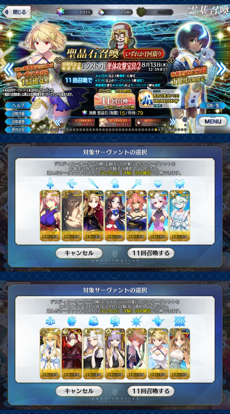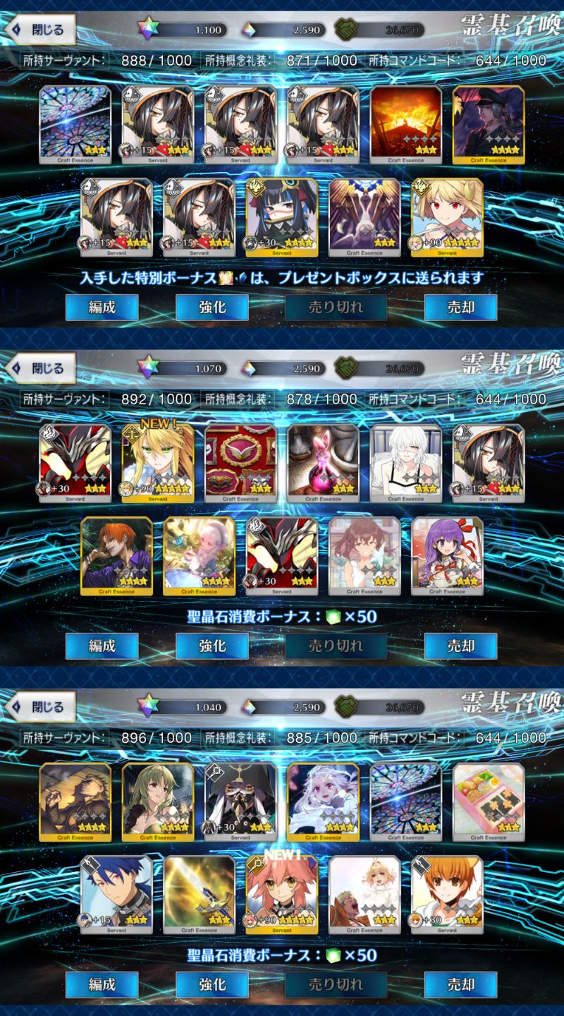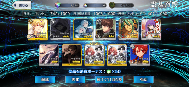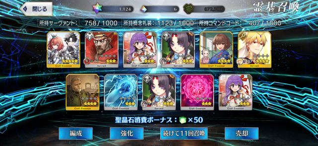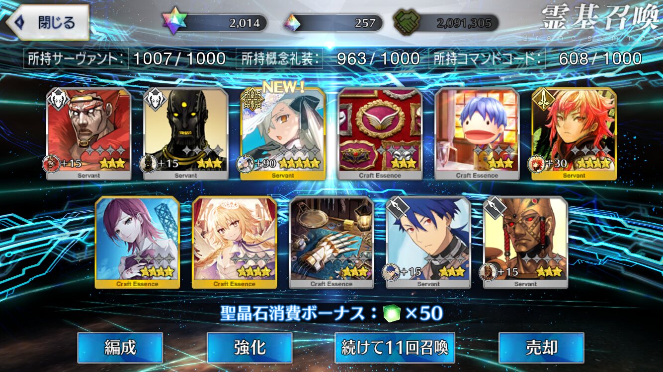 位のモンだと思うけどなーこんなに石があると10連(11連)ガチャが30石でできることが格安に思えてくるな(感覚麻痺