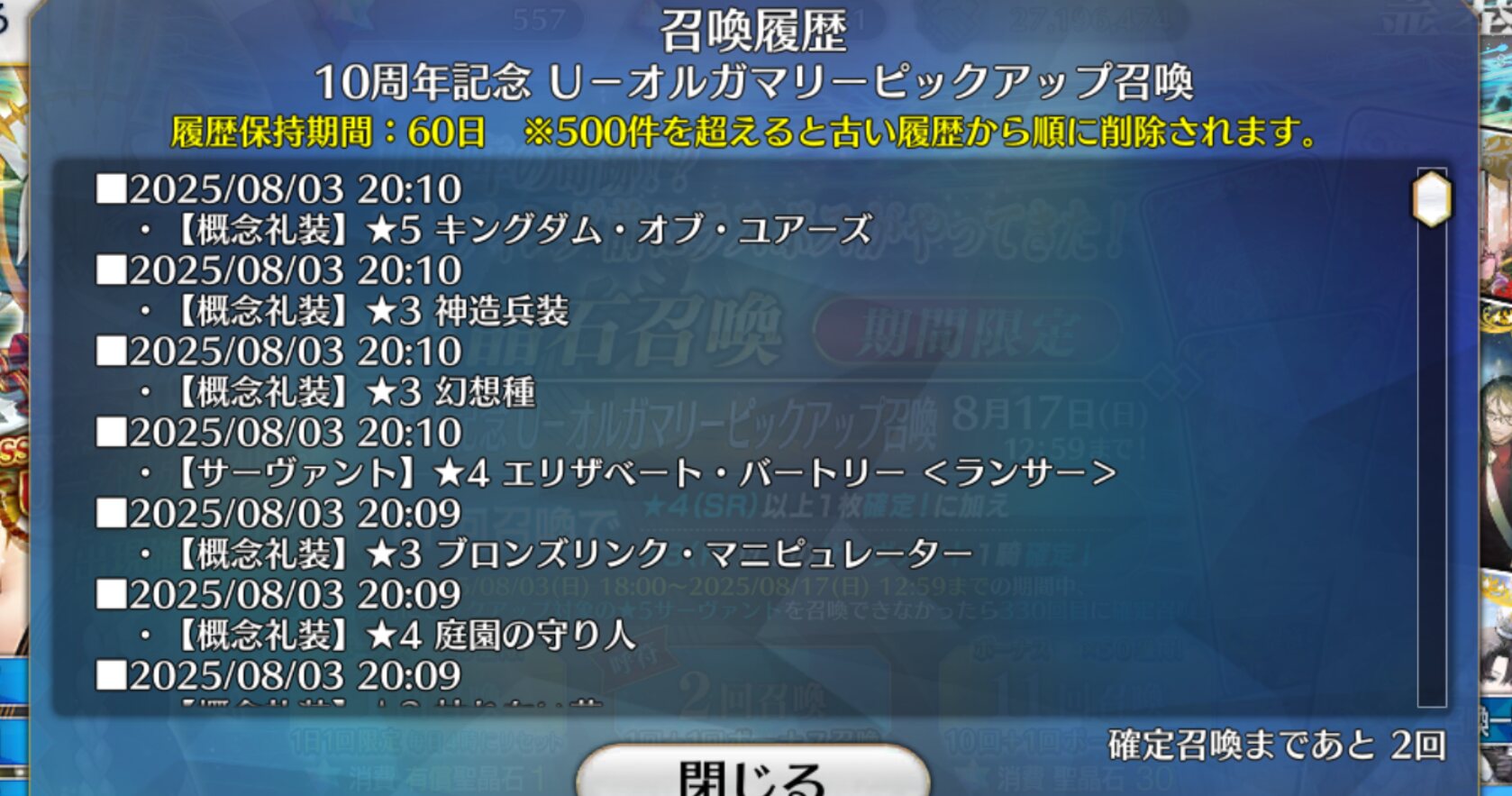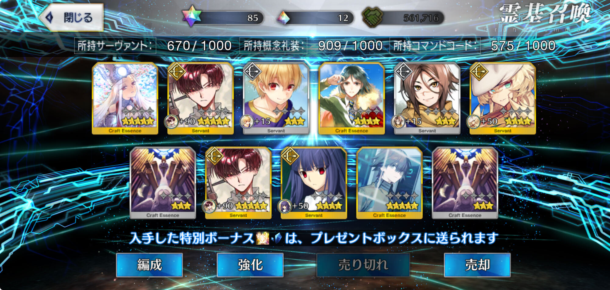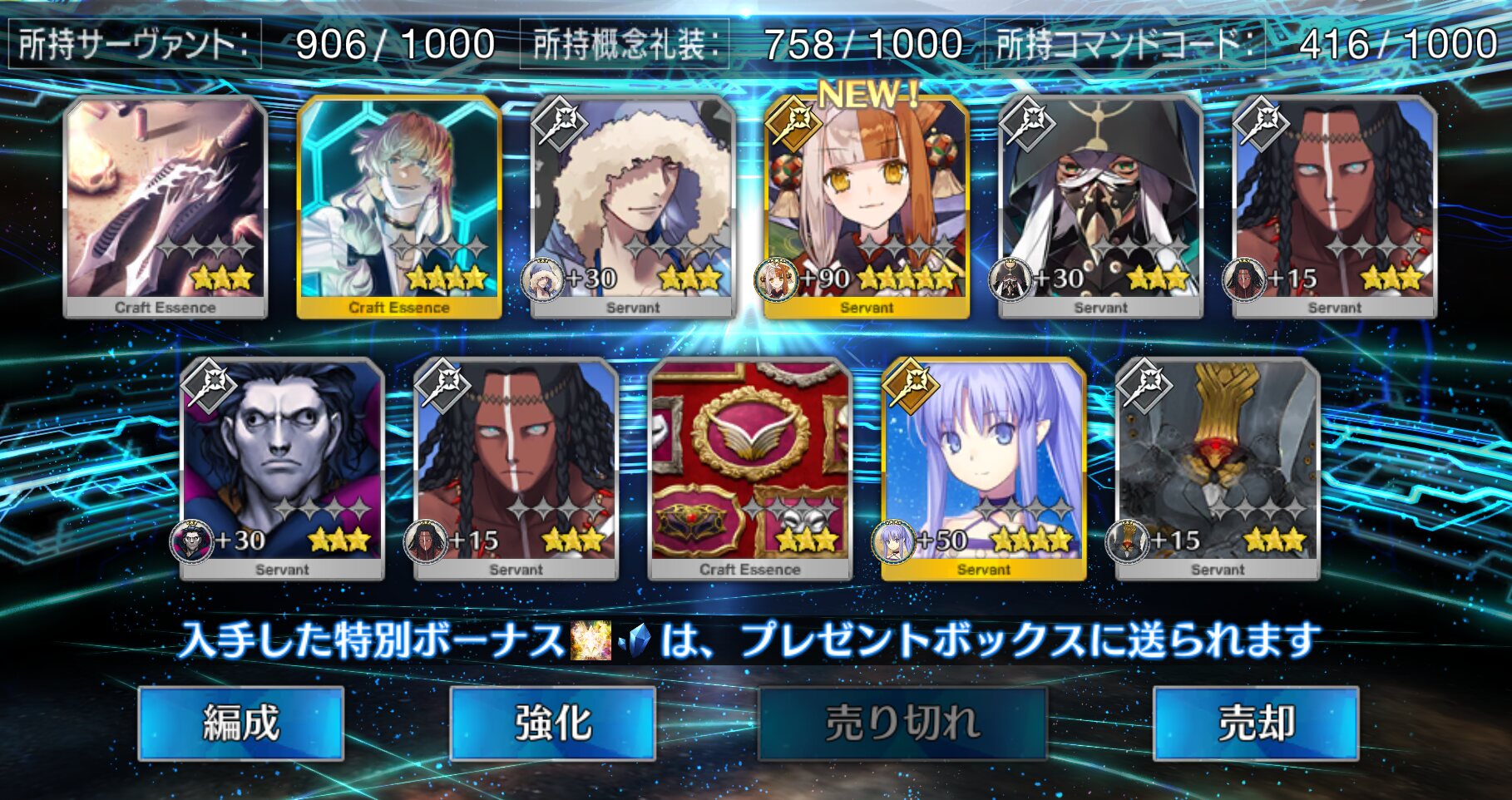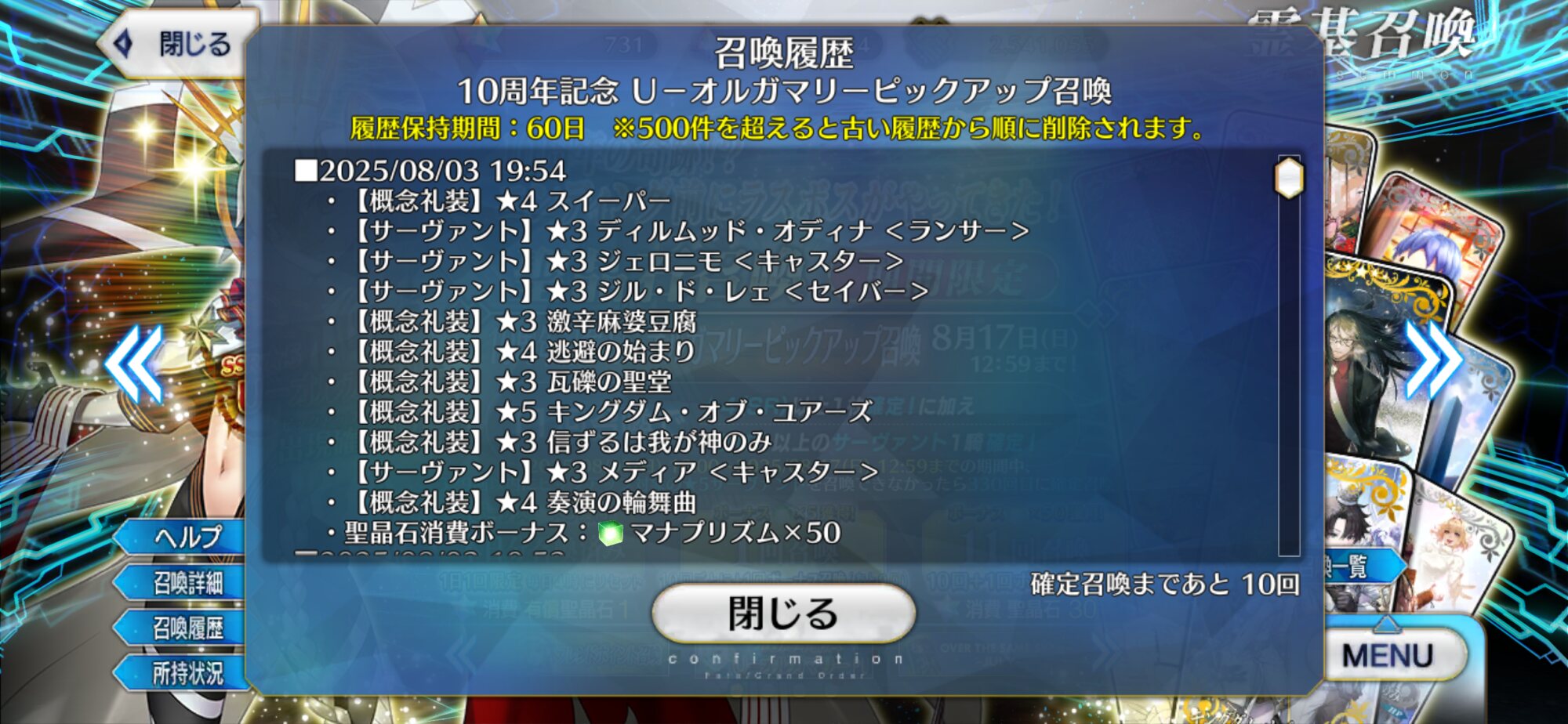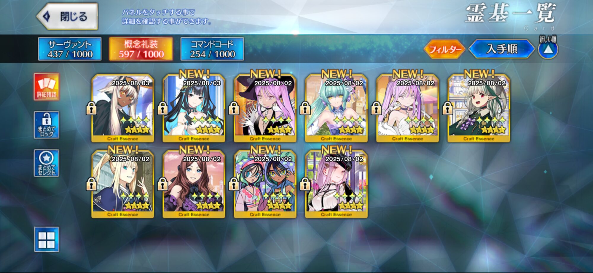 位のモンだと思うけどなーこんなに石があると10連(11連)ガチャが30石でできることが格安に思えてくるな(感覚麻痺