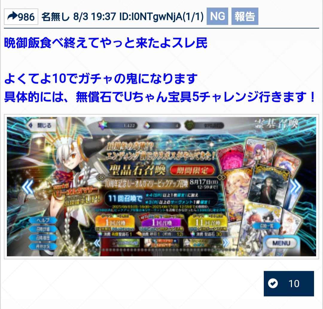 ガチャ報告スレッドその9 https://bbs.demonition.com/board/11902