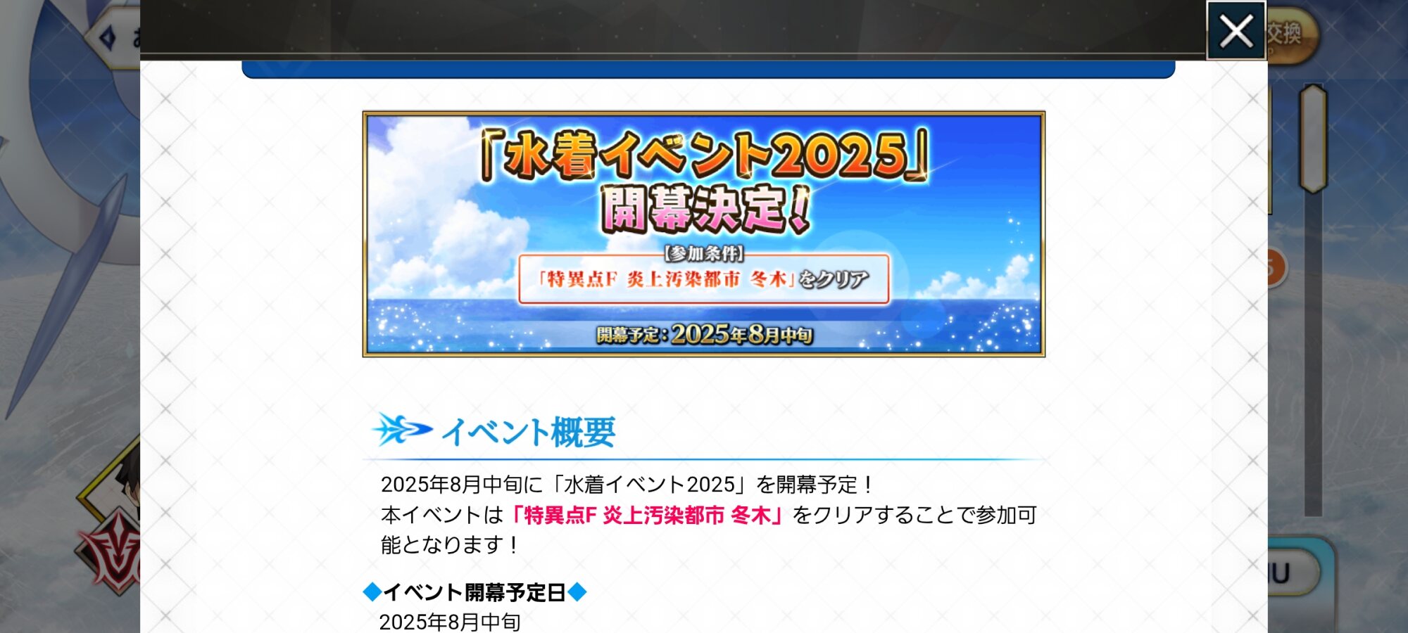 オルガマリー所長ガチャで沸き立ってるが、8月中旬に水着イベやってくるの戦々恐々する((((;゚Д゚))))ガクガクブルブル