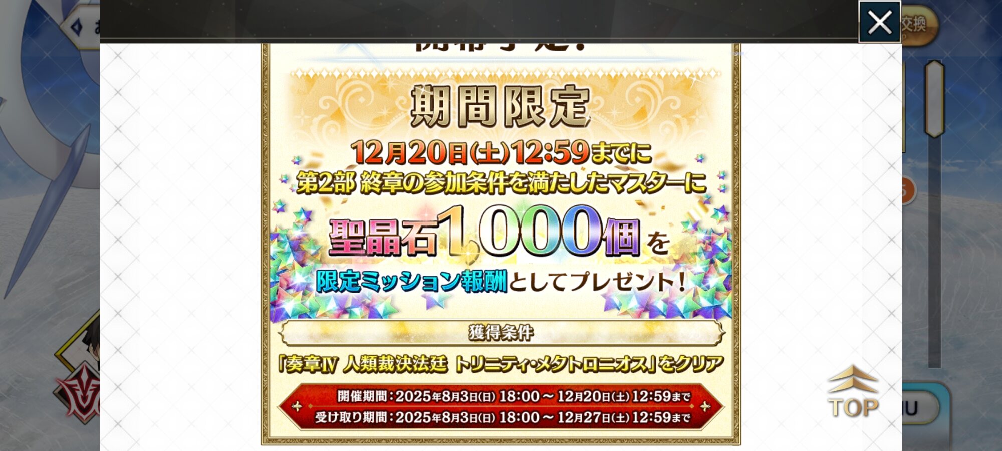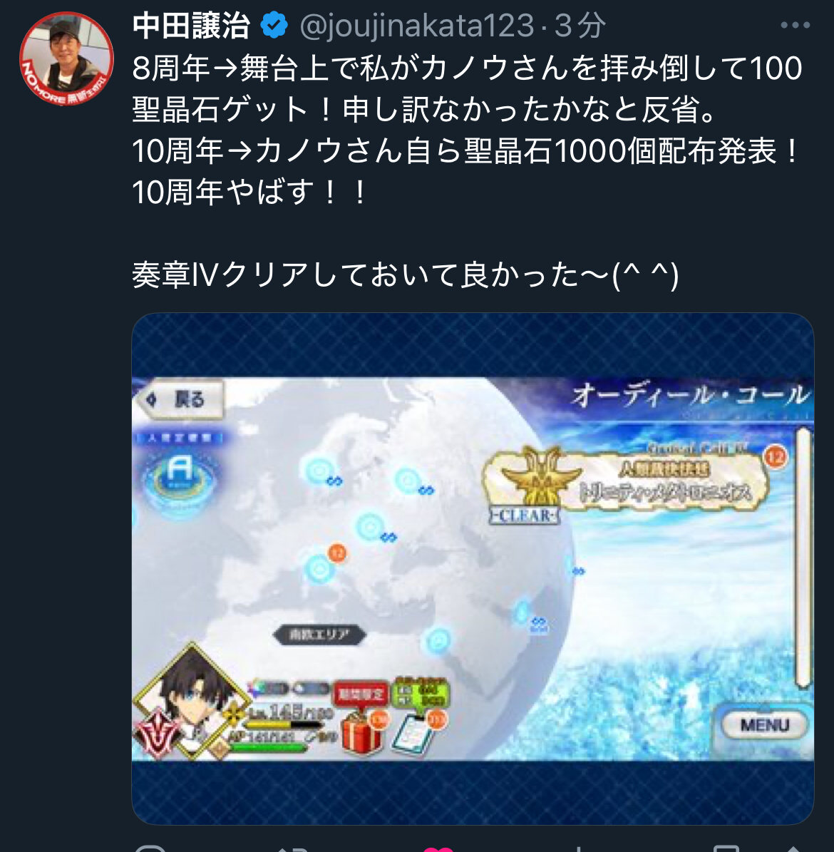 またディスティニーと福袋と冠位PUでガシャバナーが大変なことになるのですね………なんで周回数重ねたいかっていうとゲームに対するモチベが高いからで
